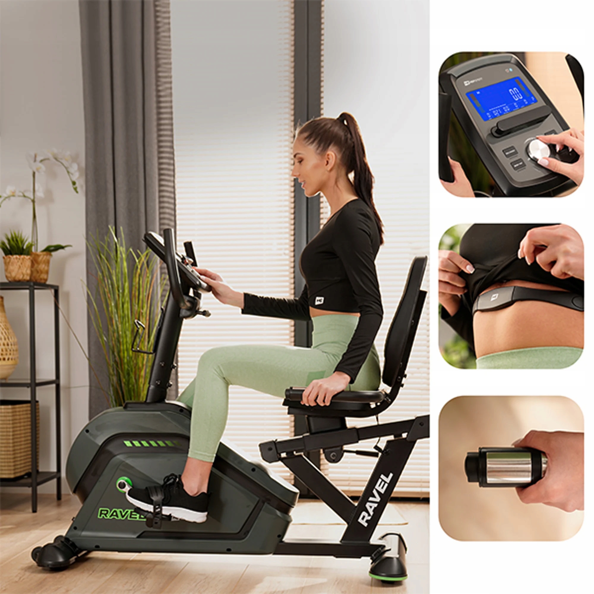 Ćwicząc na rowerze poziomym Ravel będziesz mieć najważniejsze parametry treningowe pod kontrolą. Wszystko za sprawą nowoczesnego komputera treningowego, który: