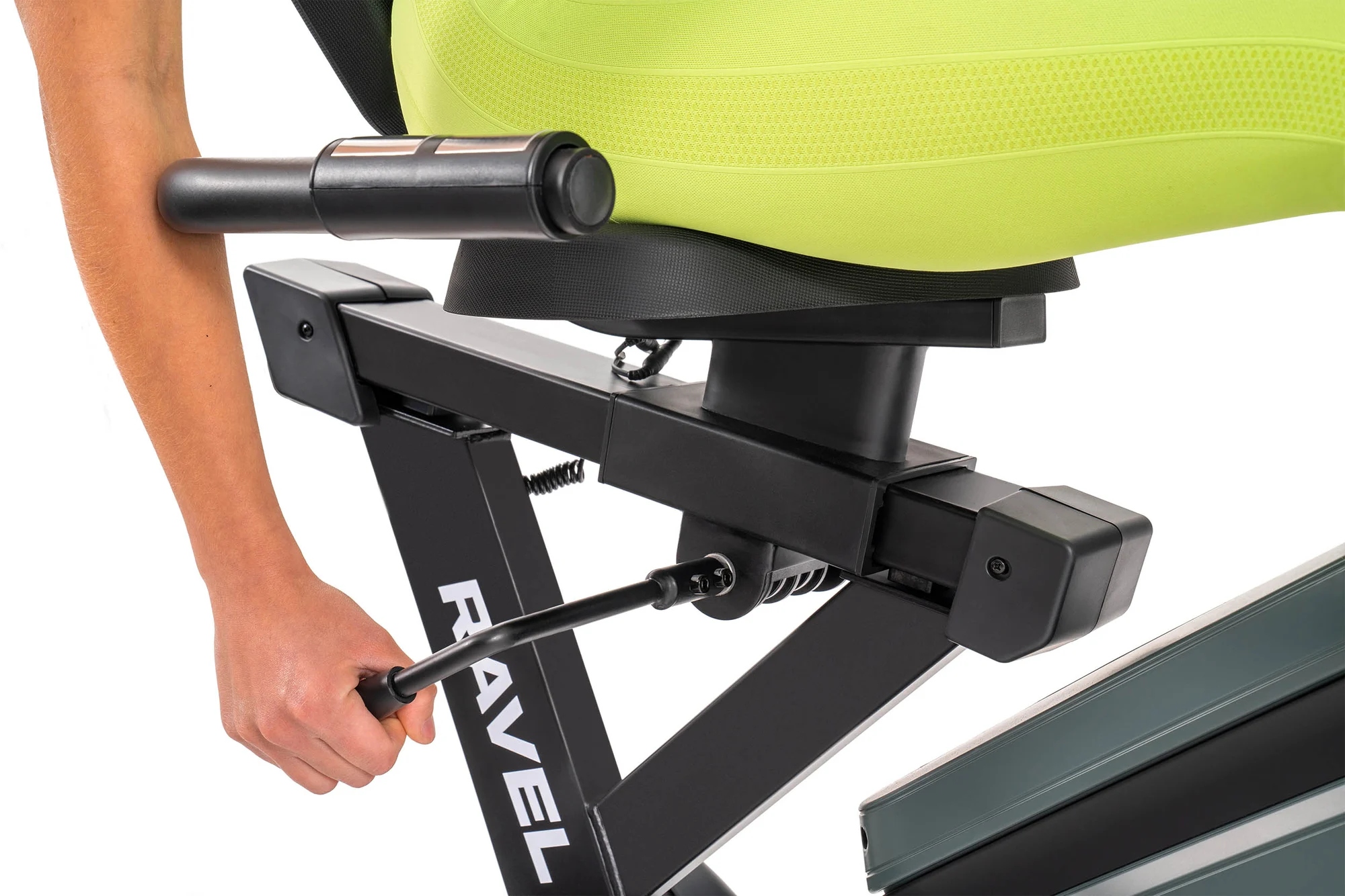 Rower poziomy elektryczny Ravel jest stabilnym sprzętem fitness, który w każdej chwili przetransportujesz w inne miejsce dzięki wbudowanym rolkom transportowym. Z kolei stopki poziomujące pozwolą Ci zniwelować nierówności podłoża i ustawić rower treningowy w stabilnej pozycji.
