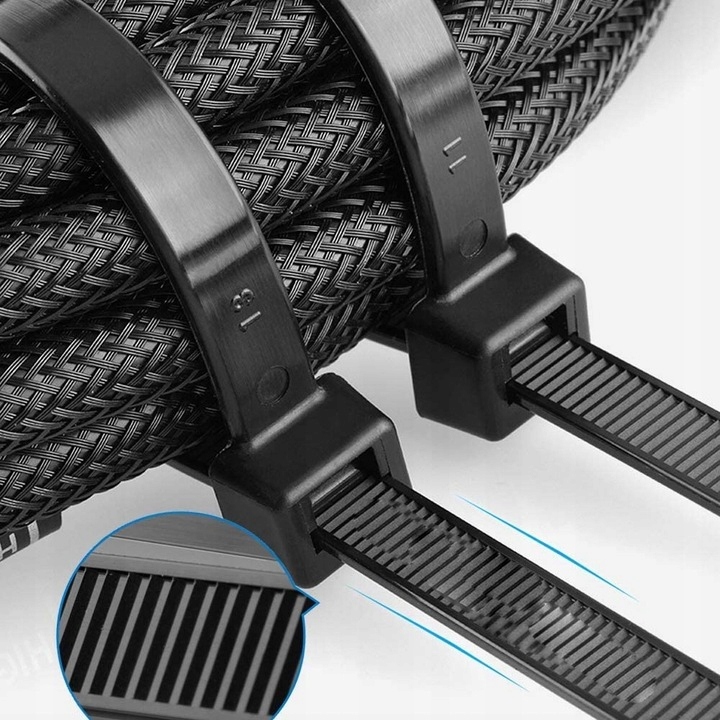 MOCNE OPASKI ZACISKOWE KABLOWE TRYTKI TRYTYTKI CZARNE TAŚMA 2,5x200 100szt