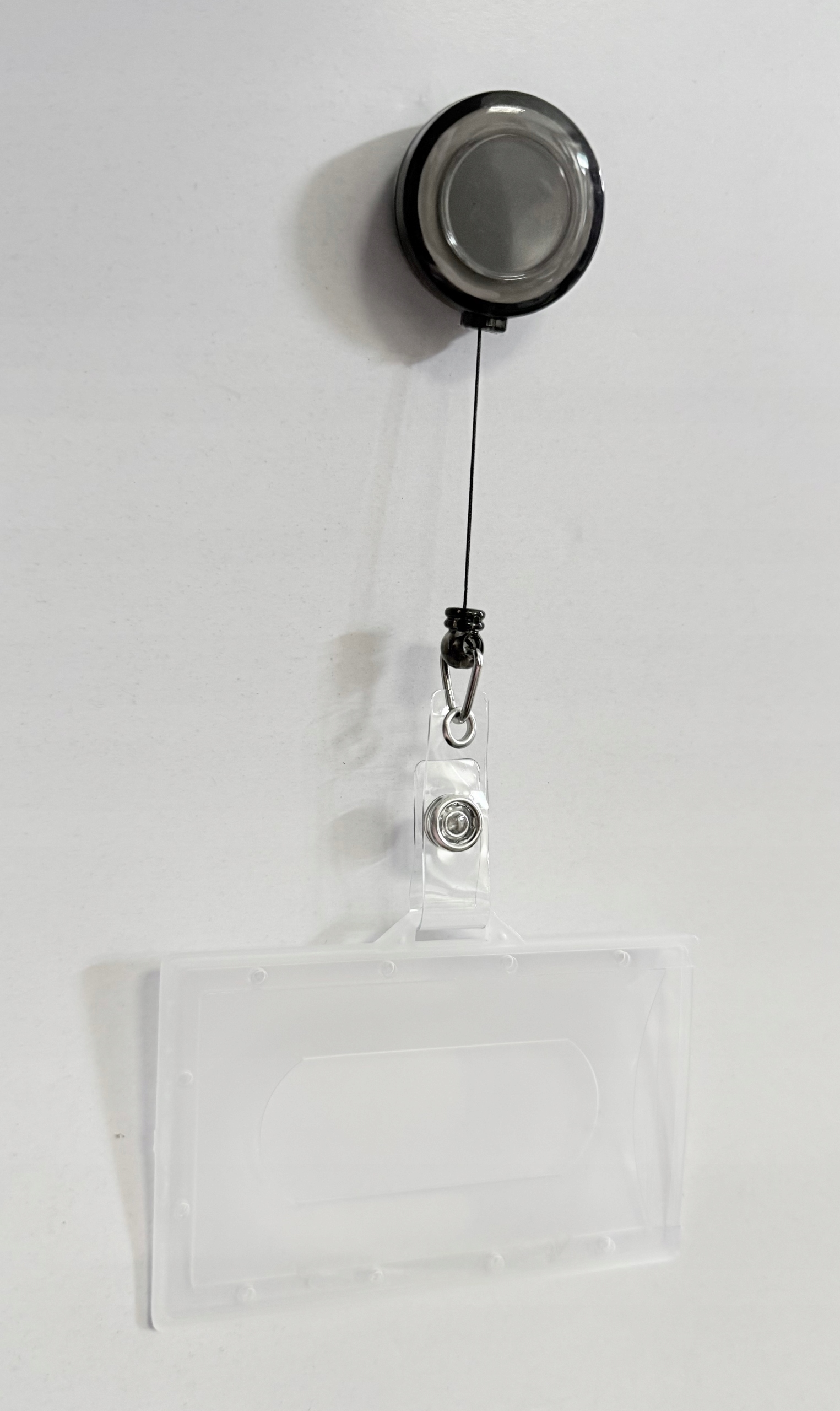 Skipass z Identyfikatorem wykonany z tworzywa, z metalowym zaczepem, wysuwaną linką na której zawieszony jest identyfikator z możliwością wsunięcia karty.