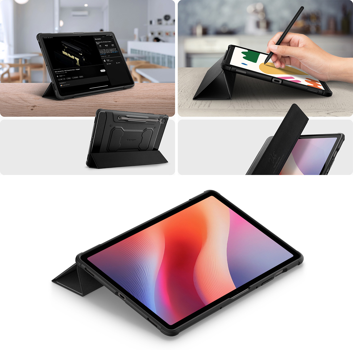 Etui z klapką od marki Spigen z serii Rugged Armor Pro o atrakcyjnym i stylowym wyglądzie, którego design urozmaici wygląd Twojego tabletu.