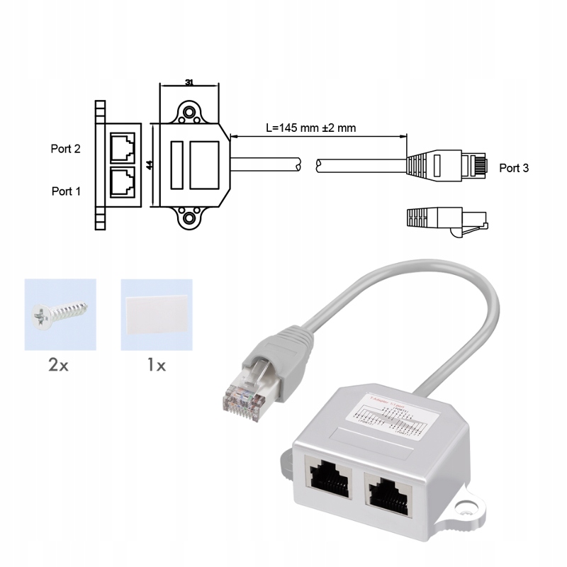1x RJ45 męski do 2x RJ45 żeński – adapter typu T