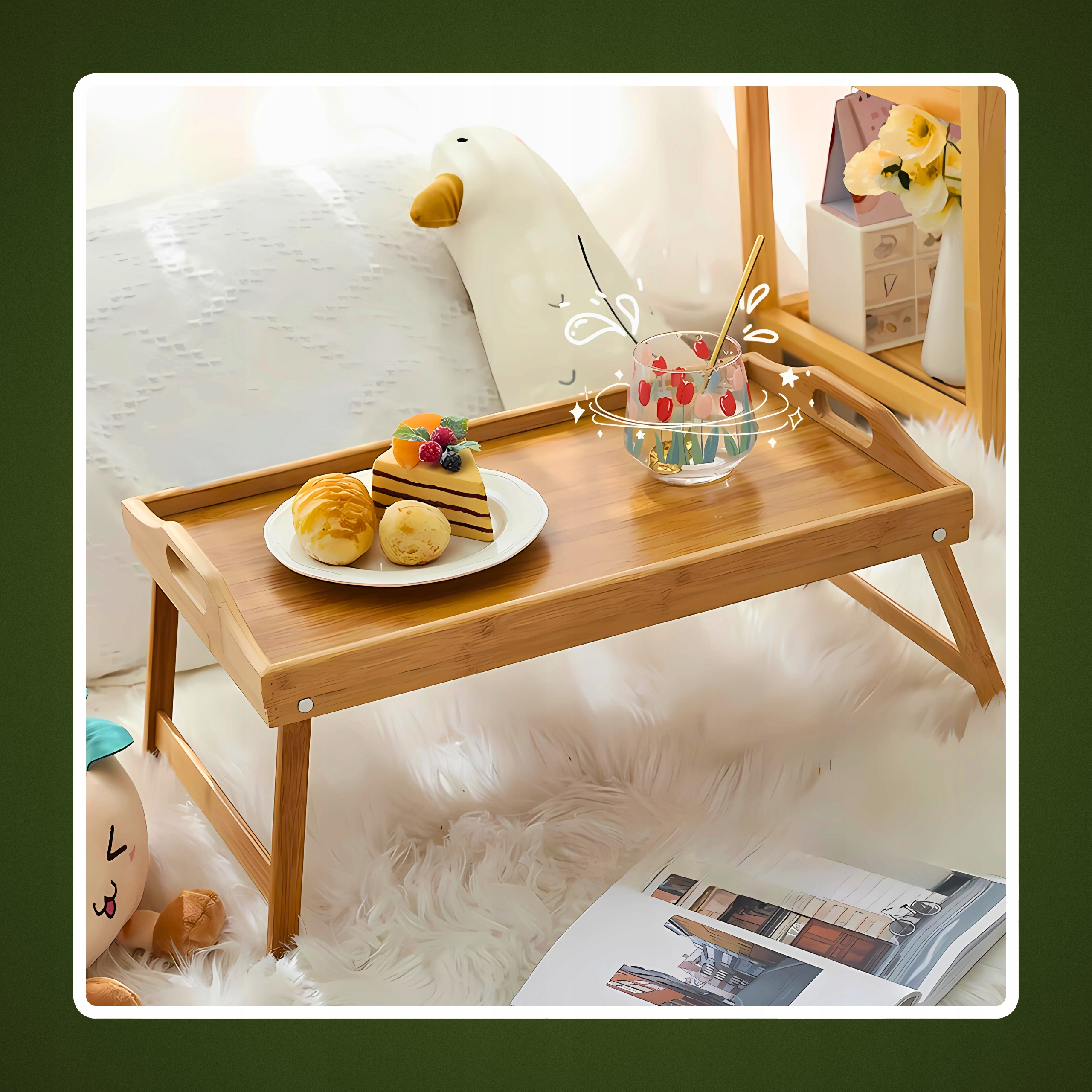 Nasz składany stolik śniadaniowy to mały luksus, na który zasługujesz. Podaruj sobie lub swoim bliskim odrobinę komfortu i ciesz się wyjątkowymi porankami każdego dnia!