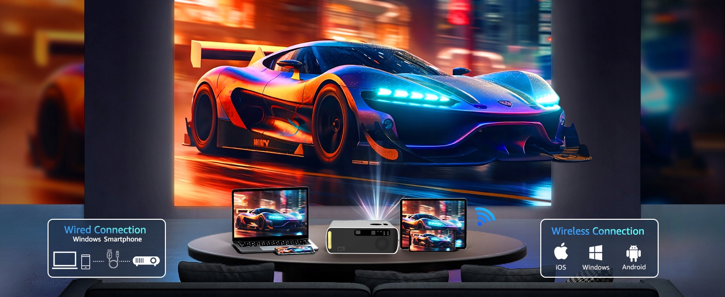 ✅ Projektor DELTA jest wyposażony w szybki moduł Wi-Fi, umożliwiając wyświetlanie bezprzewodowe, takie jak lustrzane odbicie ekranu i projekcja ekranu.