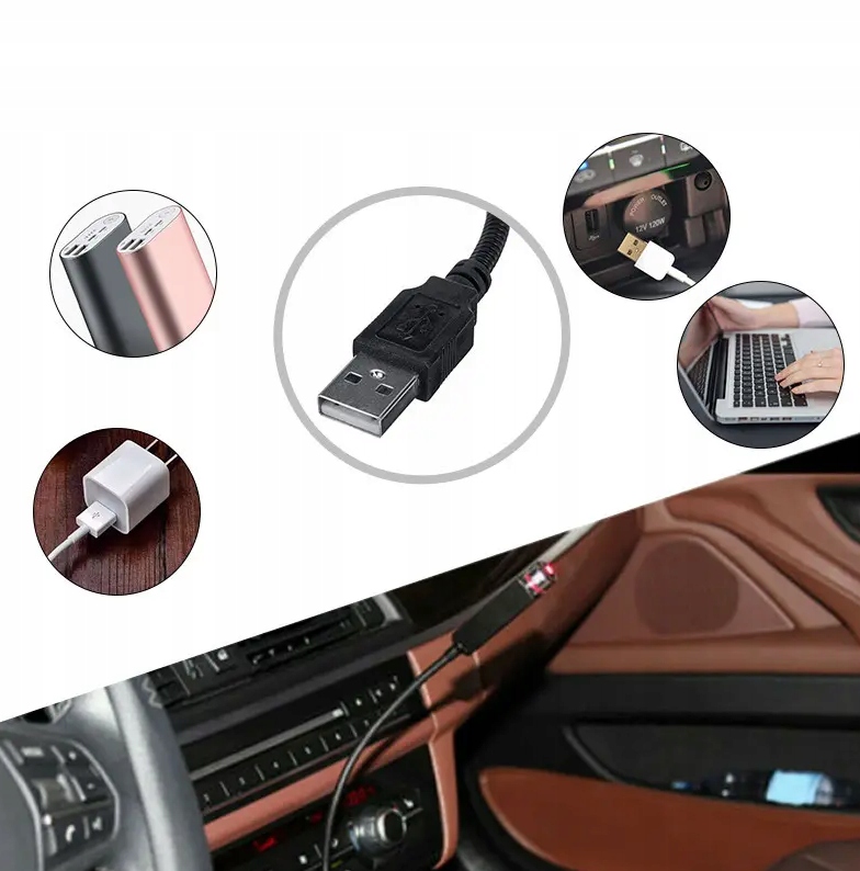 Podłączenie za pomocą standardowego złącza USB pozwala na korzystanie z lampki w różnych miejscach. Zasilisz ją z laptopa, komputera, power banku, ładowarki samochodowej lub sieciowej. Świetnie sprawdza się jako lampka laserowa do auta, tworząc niepowtarzalny klimat podczas jazdy nocą lub spotkań ze znajomymi.