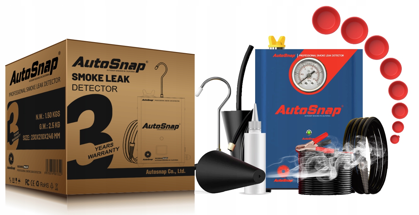 Profesjonalny automatyczny tester szczelności rur, węży, złączy, instalacji przy użyciu generatora dymu. Pomoże nam to w szybkim i dokładnym zlokalizowaniu wycieków w układach rurowych w ciągu kilku minut. Możliwość wykorzystania urządzenia przy testach układu dolotowego, test układu wydechowego, test układu chłodzenia, test uszczelnienia samochodu, test układu zbiornika paliwa, test różnych złączek rurowych.
