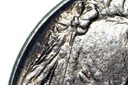 Moneta jak na zdjęciu. Niklowa pięciocentówka z literką S, należąca do najrzadszych monet niskonominałowych Stanów Zjednoczonych. Monety niklowe USA z lat 1914-1918 w menniczych stanach zachowania to praktycznie rarytasy na rynku kolekcjonerskim. Oferowany egzemplarz spełnia wszelkie kryteria stanu menniczego. Charakteryzuje się zegarowym połyskiem o całkiem pokaźnej intensywności, co w przypadku amerykańskich nikli tego okresu i tak jest wyjątkiem; szczegółowy, głęboko wybity relief idealnie współgra z pokrywającą monetę delikatną, pięknie opalizującą złocisto-bordową patyną; prezencja owego egzemplarza jest wyjątkowa, w szczególności kiedy widzi się go na własne oczy. Strona z bizonem fantastyczna, w skali Sheldona około MS 65, wódz czerwonoskórych na tle zegarowego połysku również robi piorunujące wrażenie, ze dwa oczka mniej. Podsumowując, ekstremalny stan I+, a w skali Sheldona pretendent do super wysokiej noty, minimalnie MS 63.