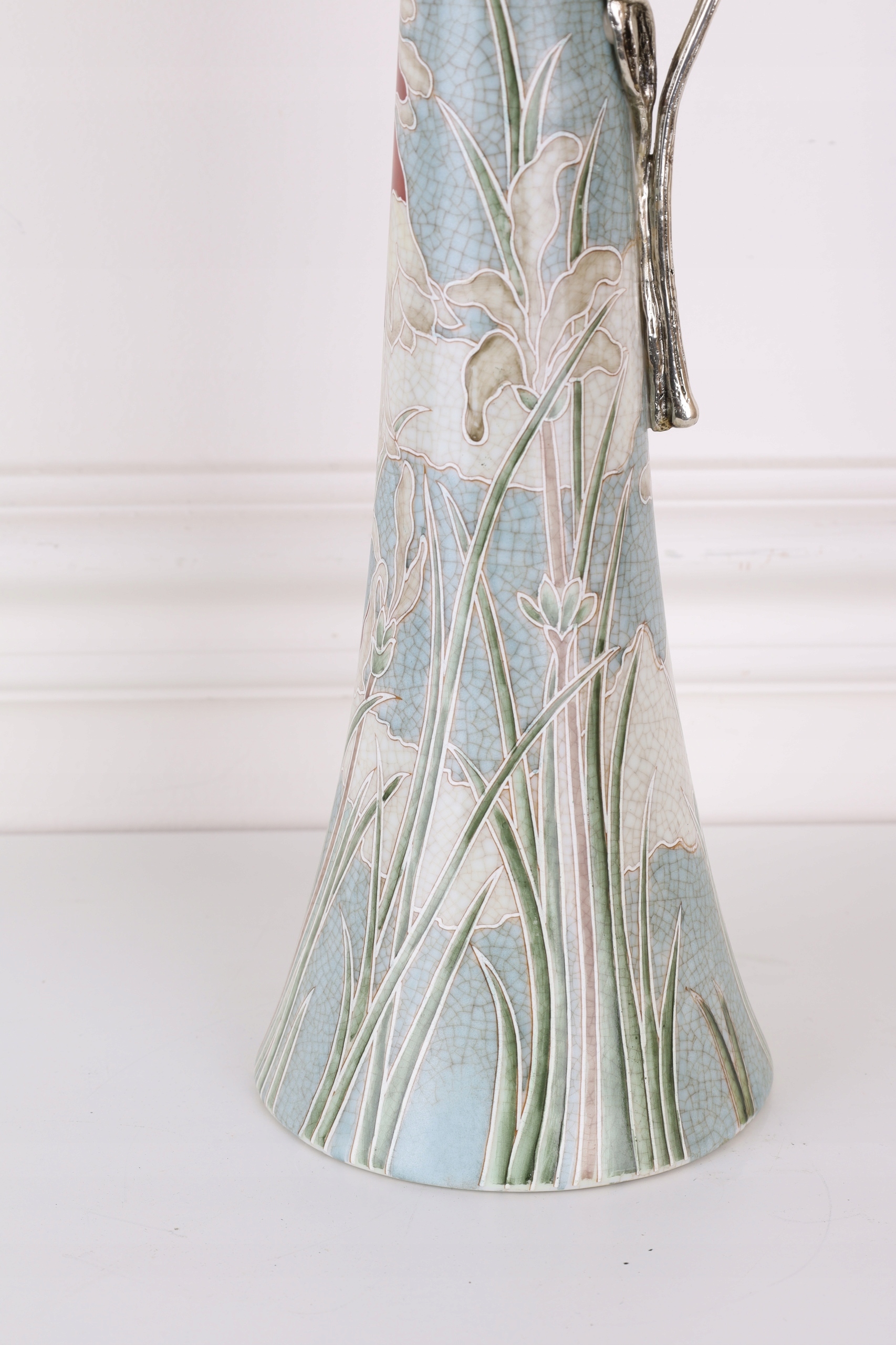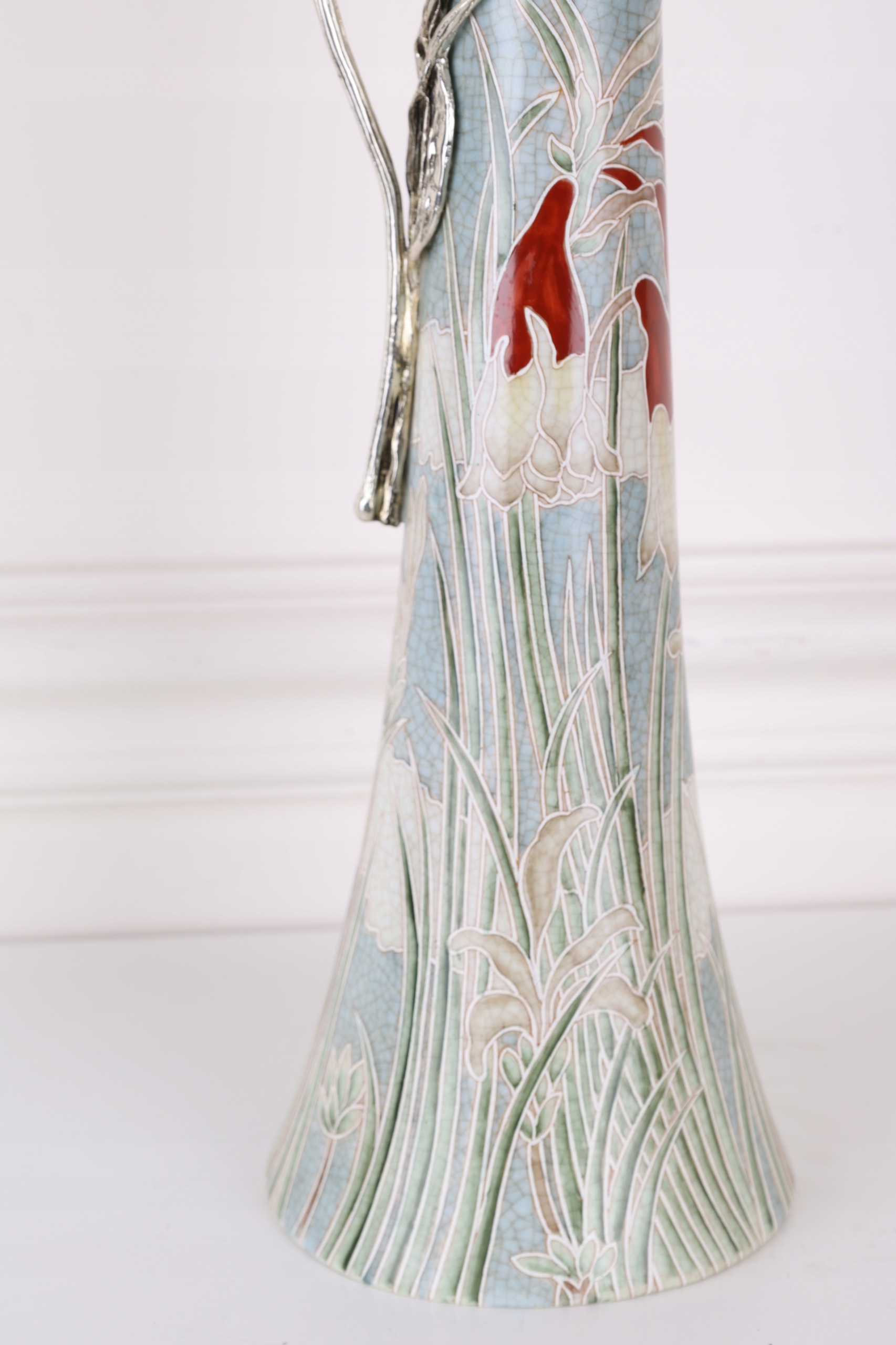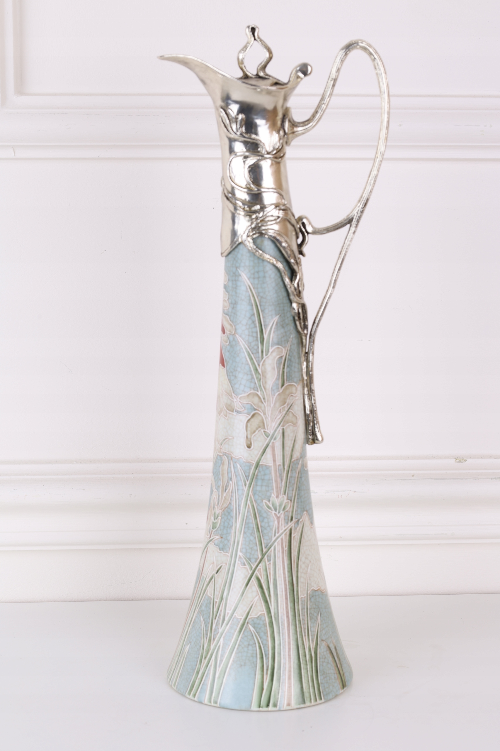 KARAFKA porcelana z brązem SECESJA SREBRNA
