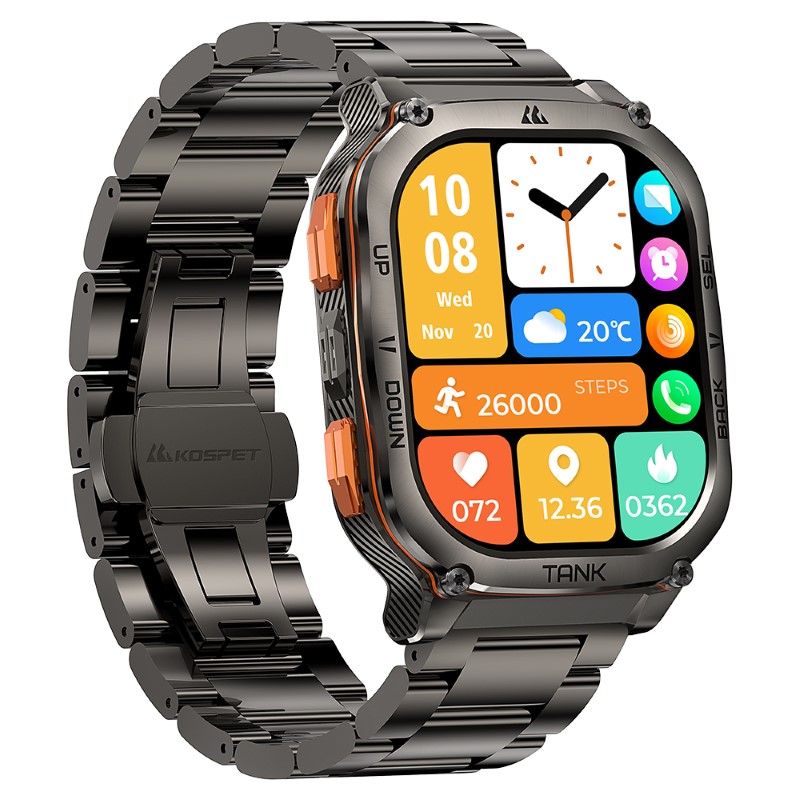 KOSPET TANK M3 ULTRA pozwala wyrazić Twój indywidualny styl za sprawą nowej aplikacji KOSPET FIT. Miksuj i dopasowuj różne tarcze zegarka, dostępne do pobrania, w tym te przeznaczone do trybu Always-On Display.