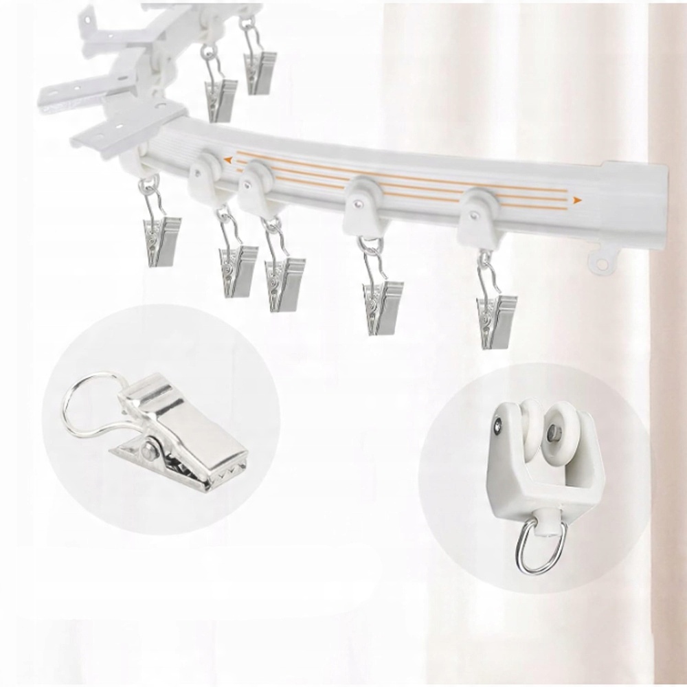 🏠WIELE ZASTOSOWAŃ - Karnisz sufitowy z klipsami wygląda świetnie w każdym otoczeniu, takim jak biuro/łazienka/salon itp. Zakrzywiony karnisz jest również idealny do dzielenia pokoju, obróbki okien wykuszowych, toru prysznicowego, kampera, przyczepy, kampera lub wszelkich ciasnych przestrzeni, których potrzebujesz, aby zmaksymalizować swoją przestrzeń i zapewnić natychmiastową prywatność.