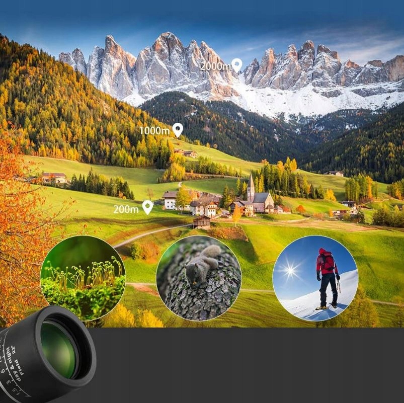✅ Wysoka jakość obrazu : Dzięki zaawansowanym soczewkom ze szkła BAK-4 i pryzmatom, monokular luneta zapewnia wyraźny, ostry i jasny obraz o wysokim kontraście.