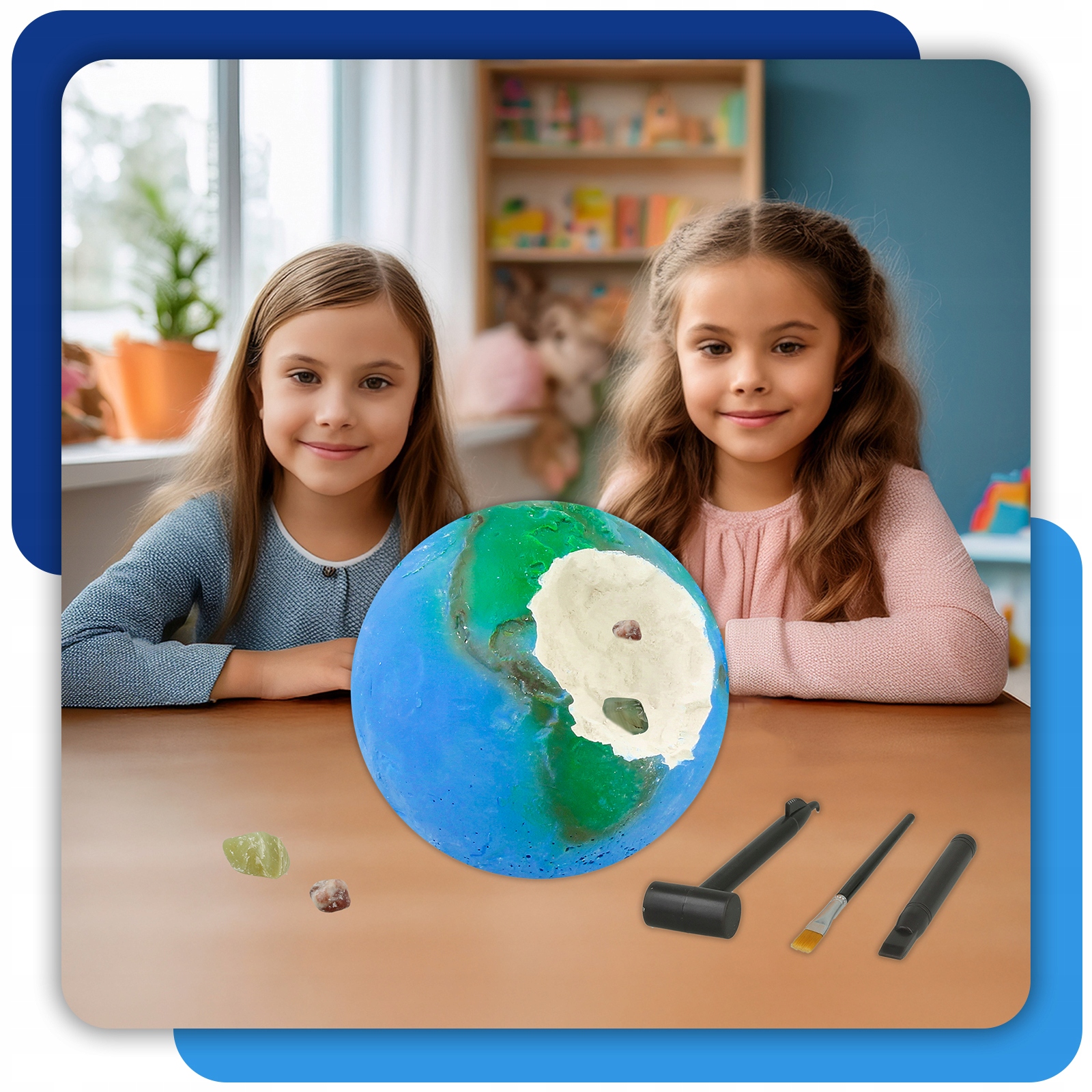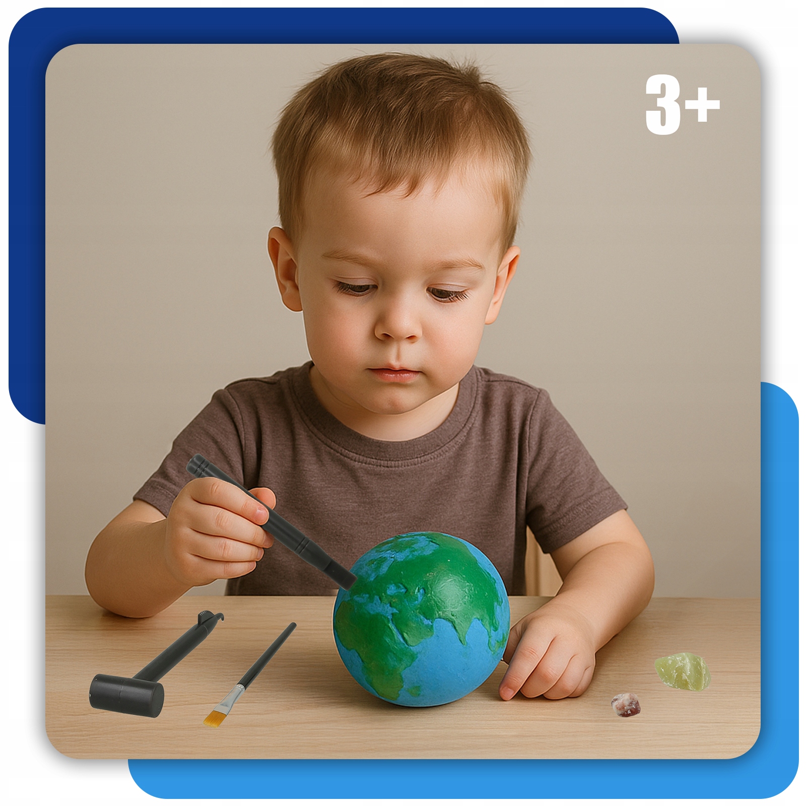 Zanurz się w fascynujący świat geologii i odkryj aż 5 różnych minerałów ukrytych w planecie Ziemi! Dzięki narzędziom dołączonym do zestawu mali badacze mogą poczuć się jak prawdziwi poszukiwacze skarbów.
