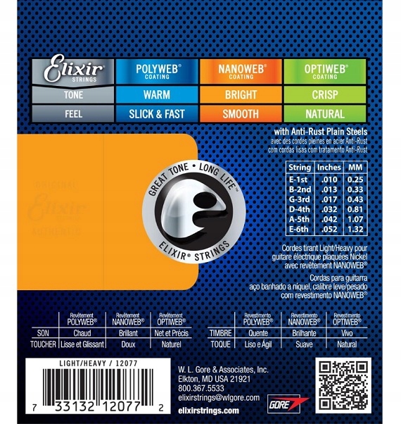 Rewelacyjne struny cenione przez wielu muzyków na całym świecie. Główną zaletą strun Elixir jest niespotykana trwałość. 5 razy dłuższa żywotność niż u innych producentów strun, a także świetne brzmienie.,