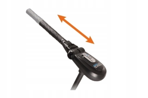 Silnik jest wyposażony w teleskopowy rumpel, który zapewnia wygodne sterowanie łodzią o regulowanej długości od 21 do 35 cm.