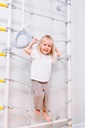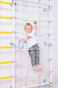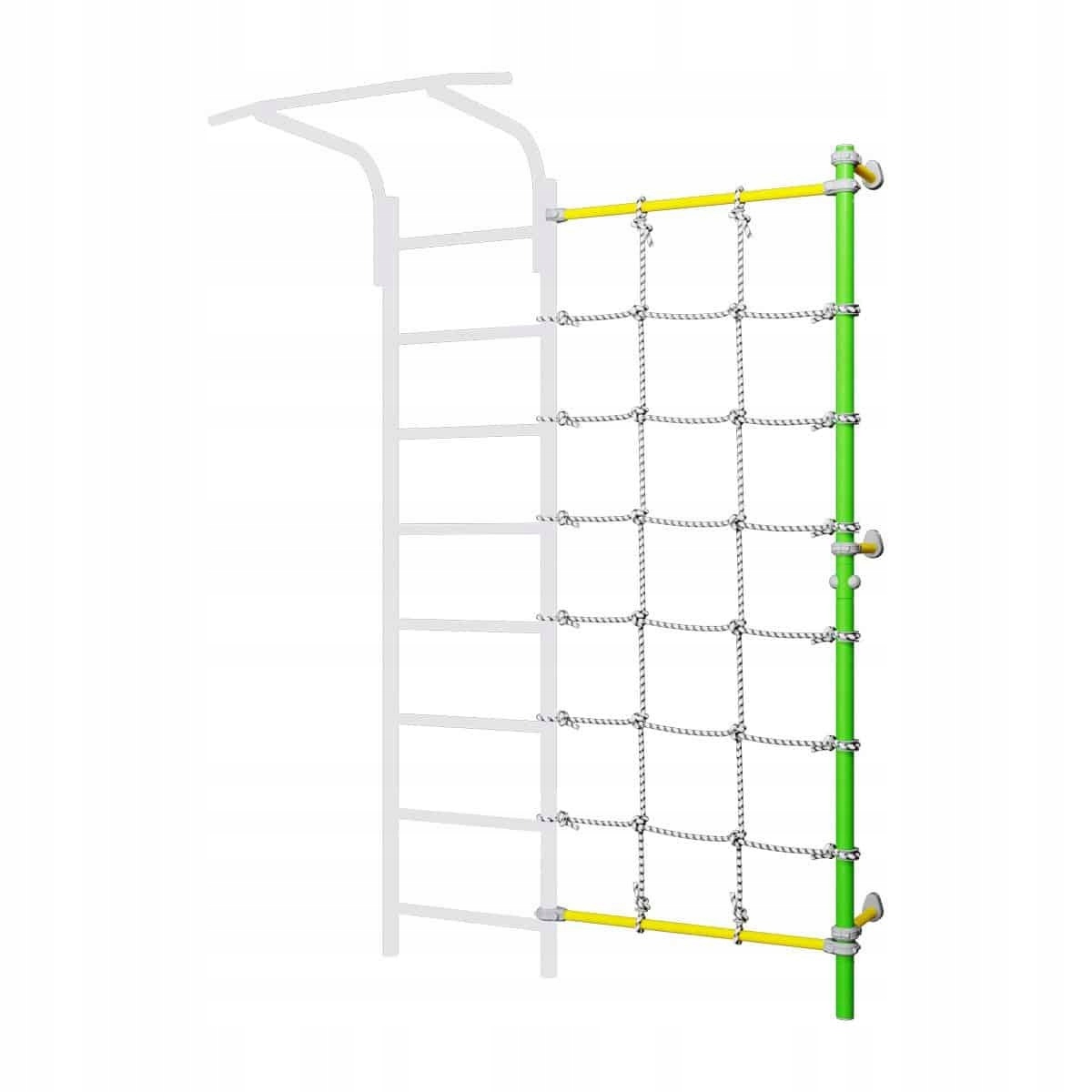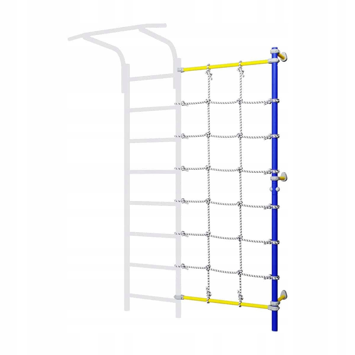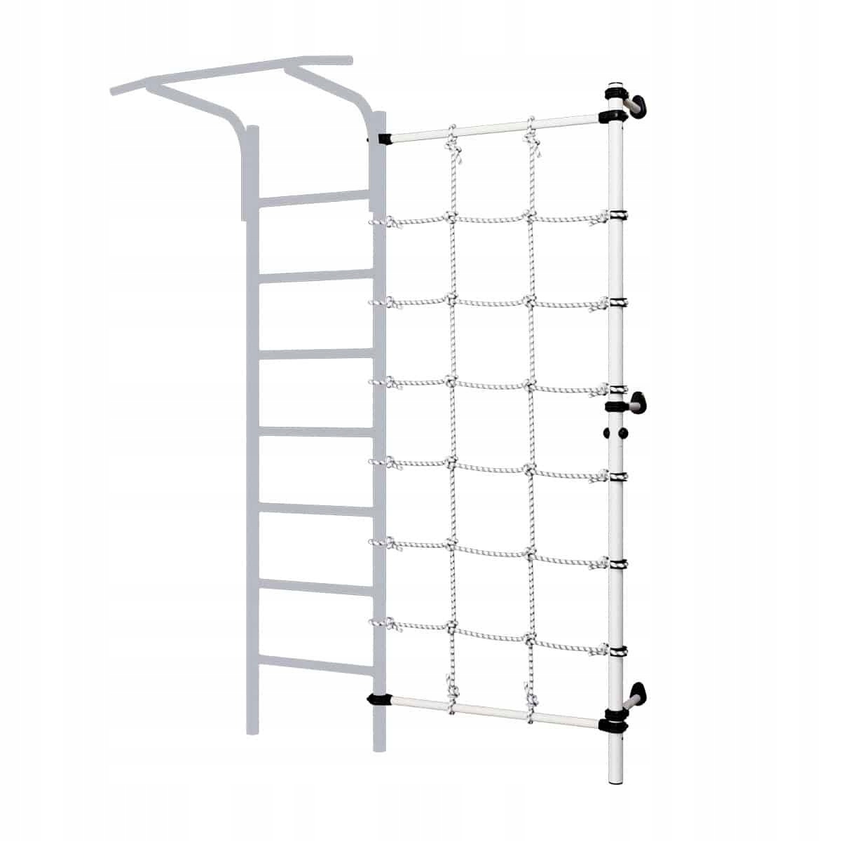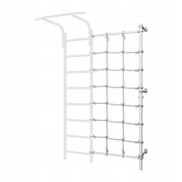Słupek przyścienny z siatką montowany do drabinki gimnastycznej przysciennej jest świetnym urozmaiceniem, które wprowadzi możliwości dla szerszego zakresu ćwiczeń i zabawy przy domowej drabince do ćwiczeń. Niestabilna siatka linowa montowana między drabinką gimnastyczną słupkiem wymusza na dziecku używanie mięśni głębokich podczas wspinania, które odpowiadają za utrzymywanie i stabilizację kręgosłupa.