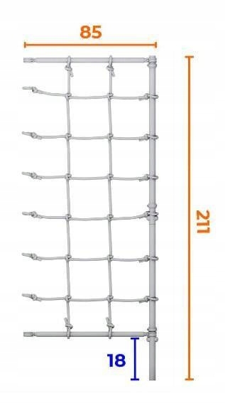 Zestaw zawiera: słupek gimnastyczny przyścienny siatka linowa