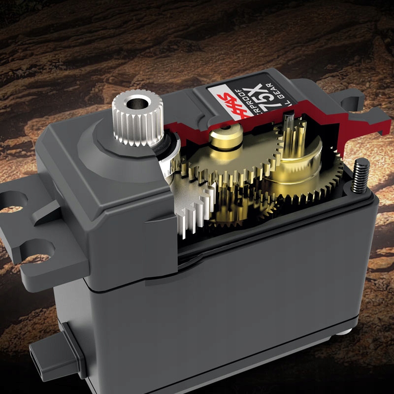 Serwomechanizm układu sterowania jest wodoszczelny i wyposażony w metalowe zębatki.
