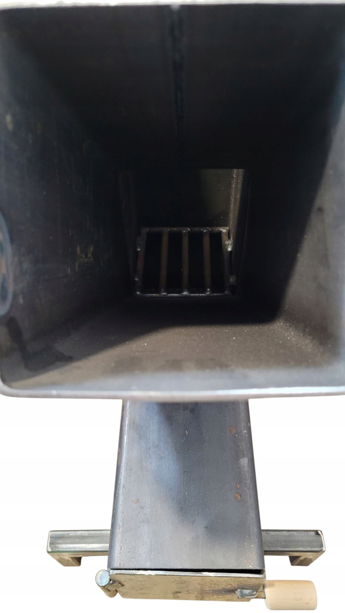 Piecyk został wykonany z solidnego profilu stalowego o wymiarach 120 mm x 120 mm x 3 mm, co gwarantuje jego trwałość i długą żywotność. Wymiary całkowite to: 39 cm długości, szerokość z nogami ok. 27 cm, oraz wysokość 57,5 cm. Wyposażony jest w praktyczne drzwiczki, które nie tylko ułatwiają rozpalanie, ale również pozwalają na precyzyjne regulowanie dopływu powietrza. Dzięki temu piecyk jest wydajniejszy, a opał spala się równomiernie, co pozwala na łatwiejsze utrzymanie optymalnej temperatury gotowania.
