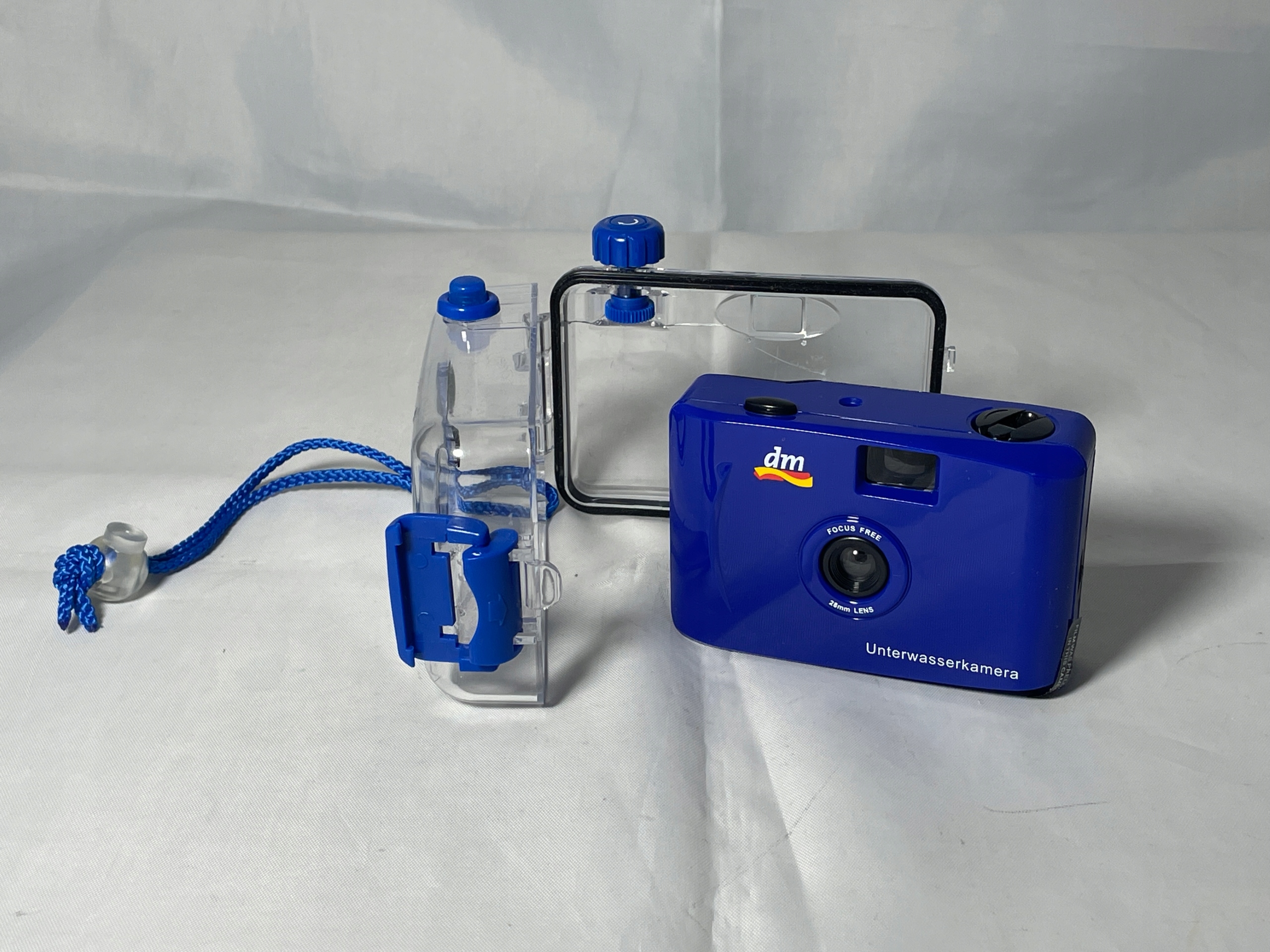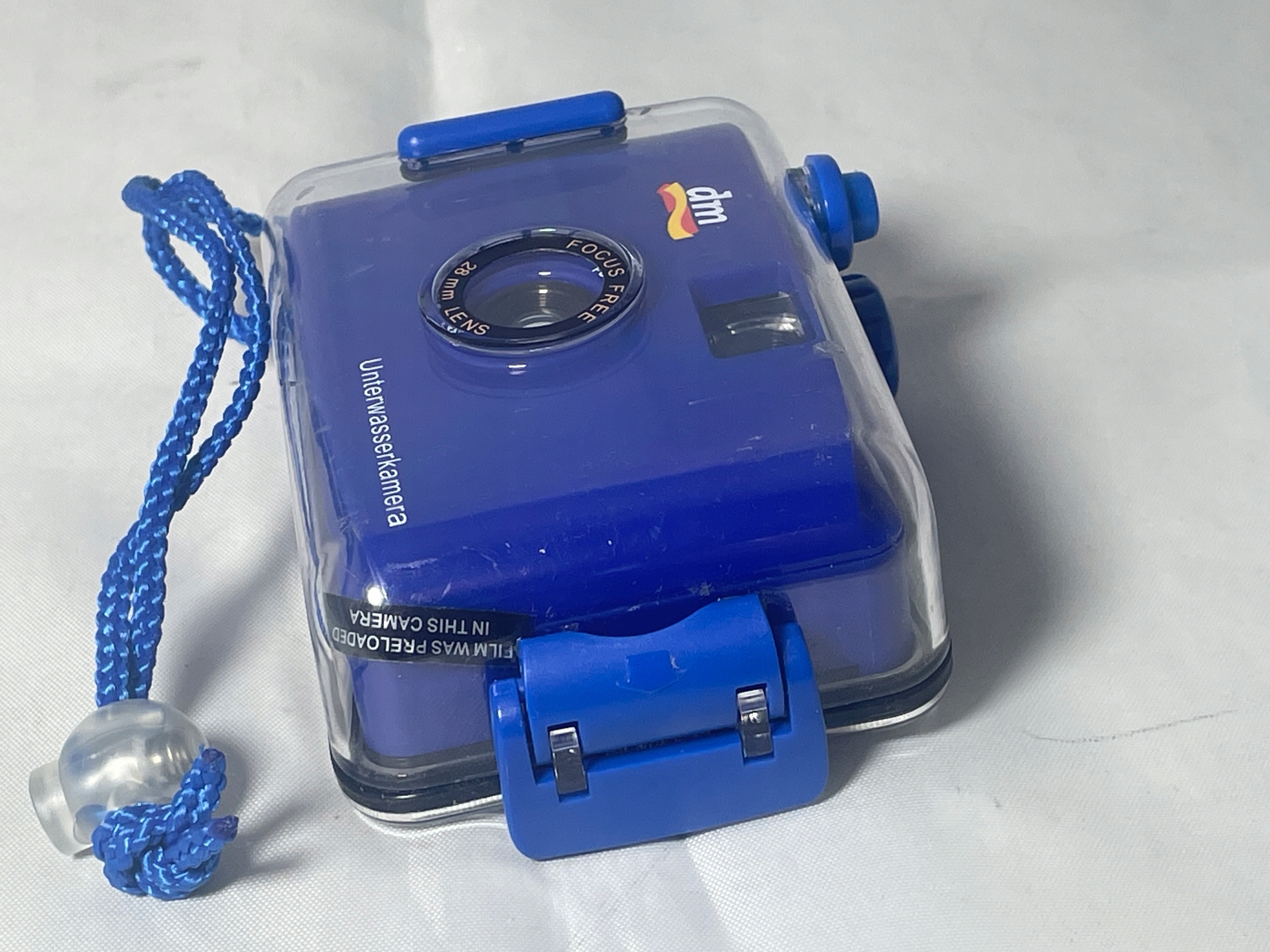 Analogowy aparat fotograficzny na film 35 mm, w obudowie wodoodpornej.