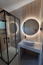 Włącznik zainstalowany jest przy dolnej krawędzi lustra, po środku szerokości.