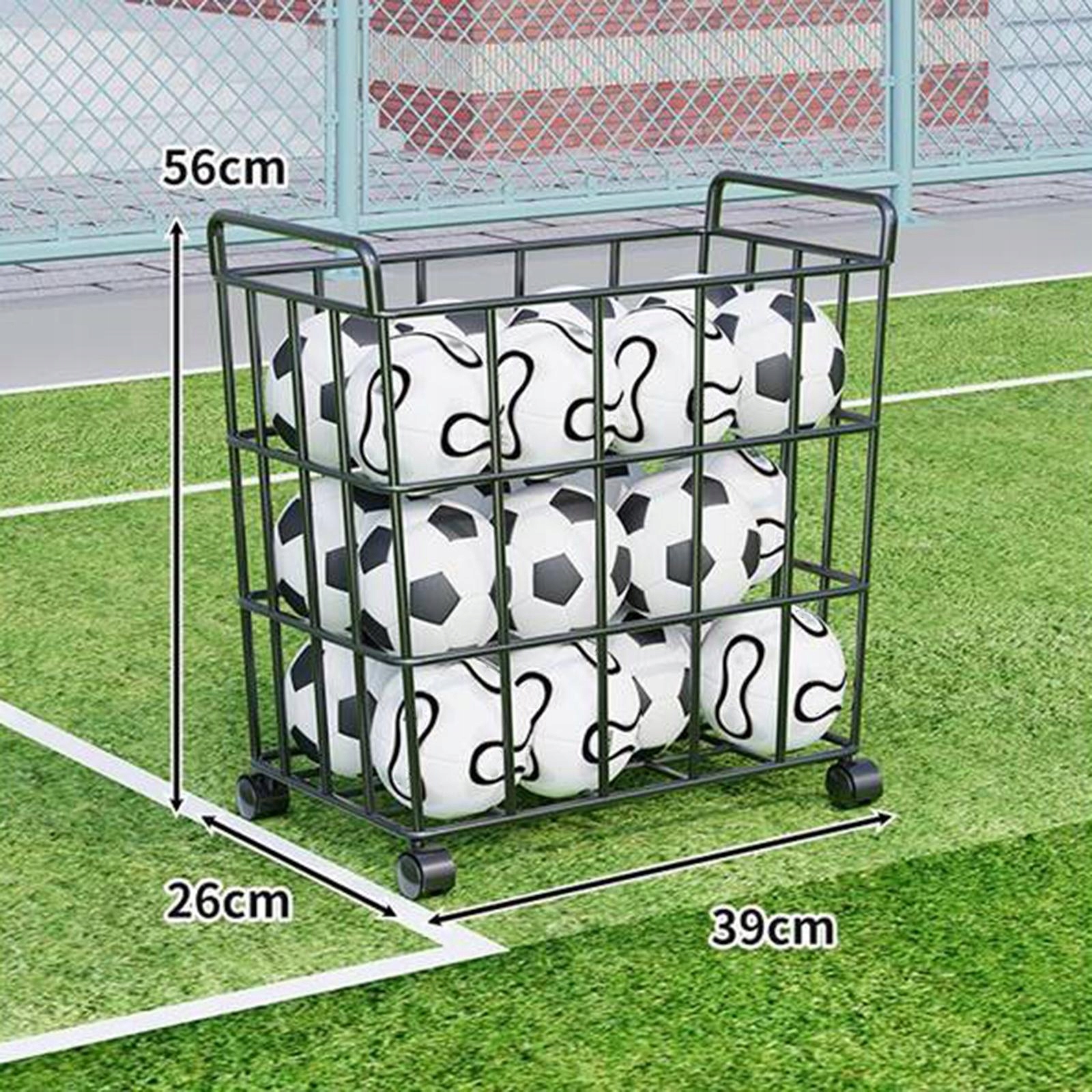 [Idealne rozwiązanie do przechowywania piłek sportowych]: Zaprojektowany z myślą o wszechstronności, ten toczący się wózek może pomieścić różne piłki sportowe, takie jak piłki do koszykówki, siatkówki, piłki do piłki nożnej i piłki nożnej. Wyposażony w cztery kółka, można go bez wysiłku przesuwać w dowolne miejsce i idealnie pasuje do określonych miejsc, nadaje się zarówno do użytku wewnątrz, jak i na zewnątrz