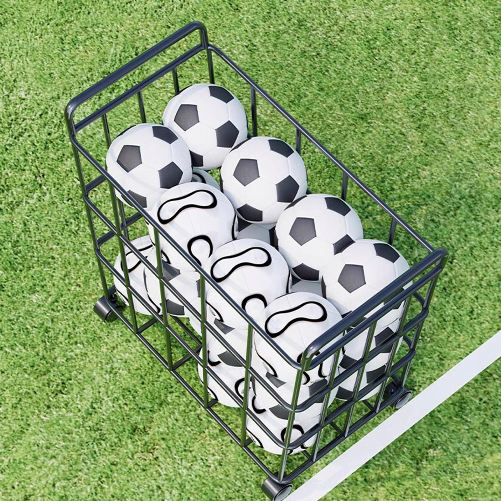 Wózek do przechowywania piłek sportowych Żelazny wygodny wózek na piłki do garaży Siłownia Czarny L