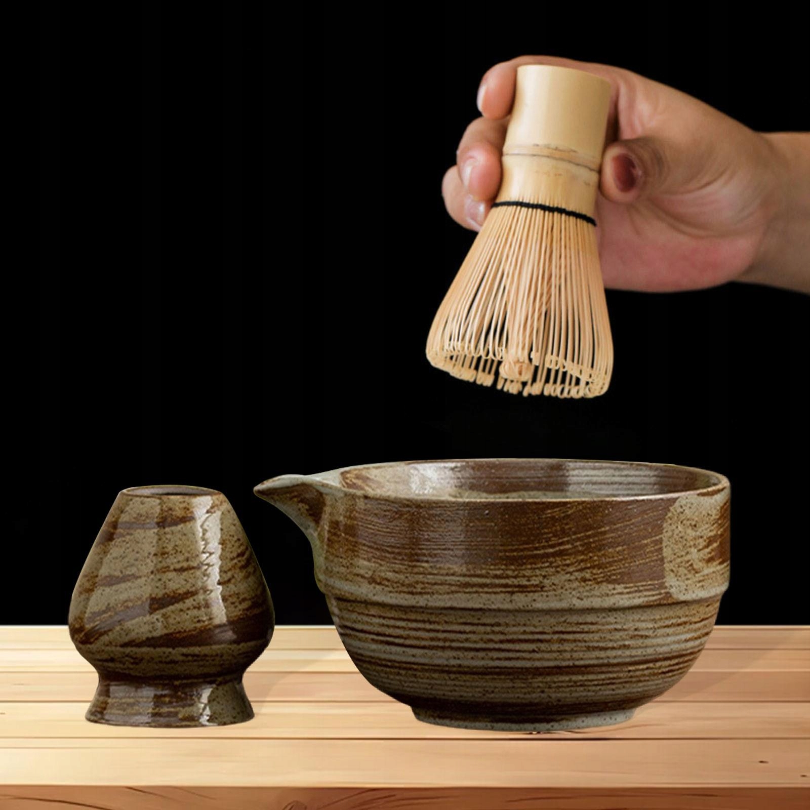 [Materiał]: Ten tradycyjny zestaw misek do matchy jest wykonany z ceramiki, co zapewnia długą trwałość i czyni go niezawodnym wyborem podczas ceremonii parzenia herbaty