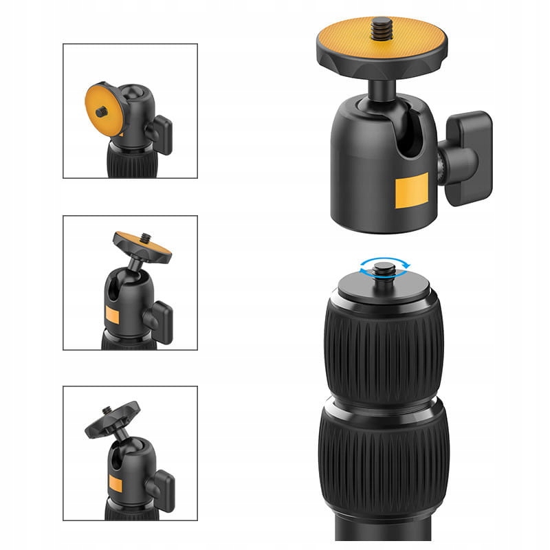Zarówno pionowa kolumna, jak i poziome ramię, są zakończone niewielkimi, zintegrowanymi głowicami kulowymi z gwintem 1/4’’. Uniwersalne gwinty fotograficzne pozwolą na prosty i bezpieczny montaż szerokiej gamy akcesoriów foto-video – lamp panelowych LED, zewnętrznych mikrofonów kierunkowych czy uchwytów na telefon bądź kamerę sportową – jak i niewielkich aparatów kompaktowych czy bezlusterkowych. W zestawie znajduje się uchwyt do smartfonów o szerokości od 55 do 85 mm.