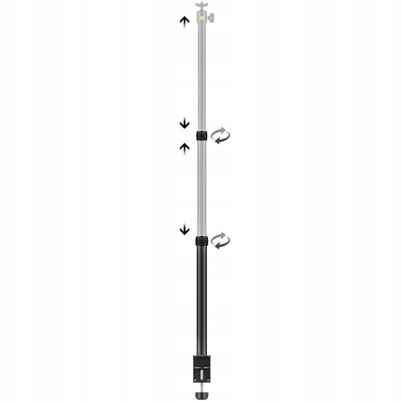 Teleskopowy uchwyt stołowy Ulanzi VIJIM LS02 o regulowanej wysokości z poziomym ramieniem. Zakończony głowicami kulowymi z gwintem 1/4’’. Może służyć do montażu niewielkiego aparatu fotograficznego, kamery video, uchwytu na telefon, mikrofonu czy lampy LED. Montowany do blatu za pomocą zacisku – imadła.