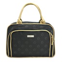Designerska kosmetyczka w beżowym kolorze z detalami w kolorze złotym pochodzi z kolekcji Gold. Znak wodny oraz duże metalowe logo w kolorze złotym podkreśla oryginalność produktu.