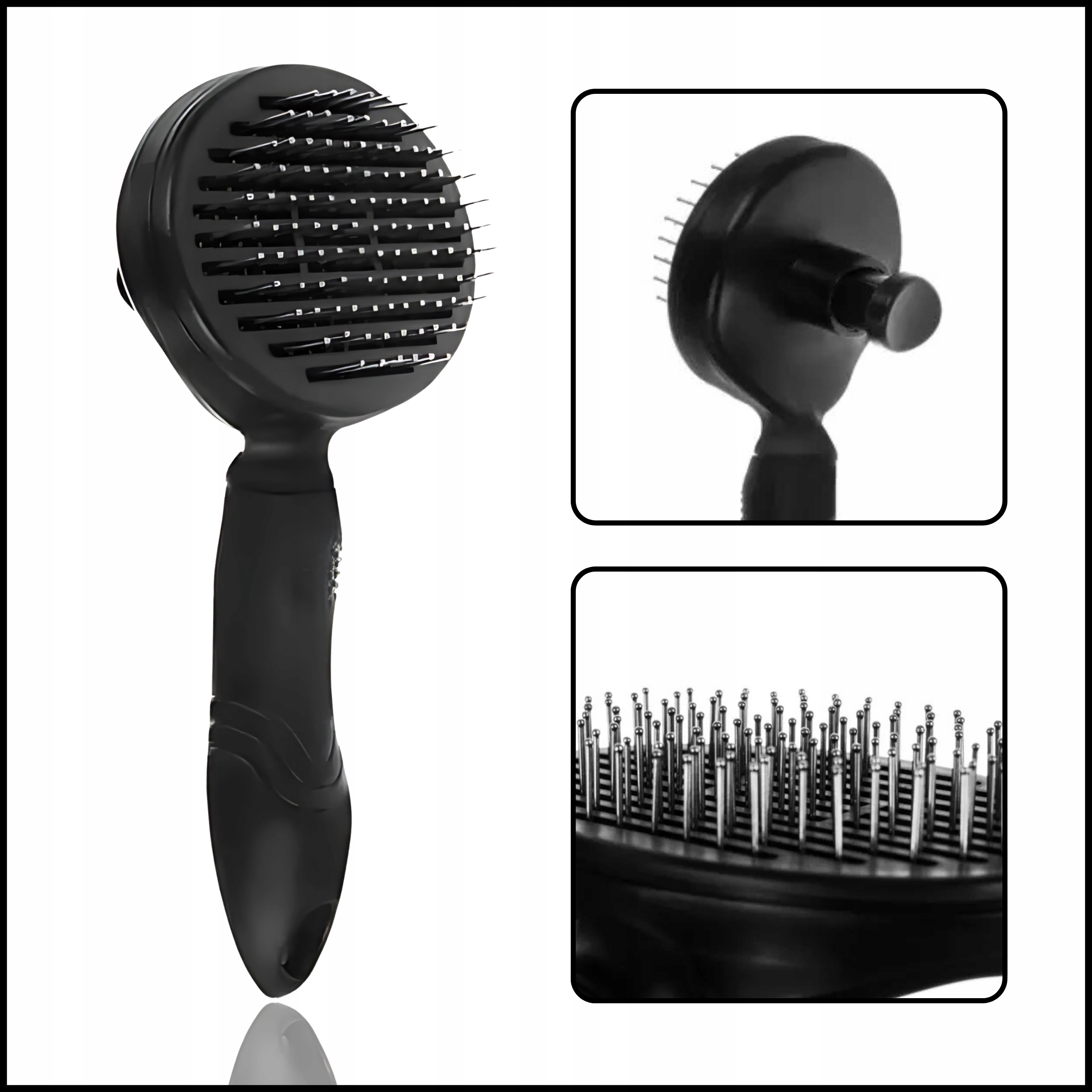 ❤️ Ząbki szczotki ułożone w liniach prostych, z zaokrąglonymi końcówkami, delikatnie masują skórę, zapobiegając podrażnieniom i wspierając naturalny połysk sierści.