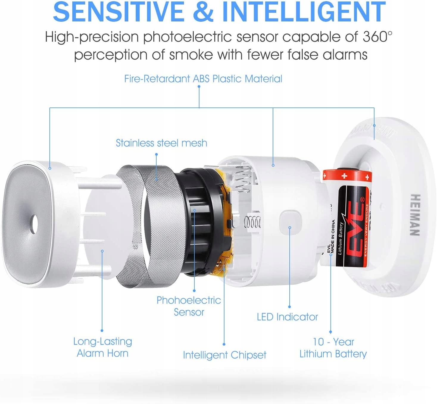 Czujnik pożaru HEIMAN jest wyposażony w zaawansowany czujnik fotoelektryczny, który skutecznie wykrywa obecność dymu i szybko reaguje na pojawiające się zagrożenia. Dzięki temu masz pewność, że zostaniesz poinformowany o ewentualnym pożarze we wczesnej fazie, co daje Ci cenny czas na podjęcie odpowiednich działań.