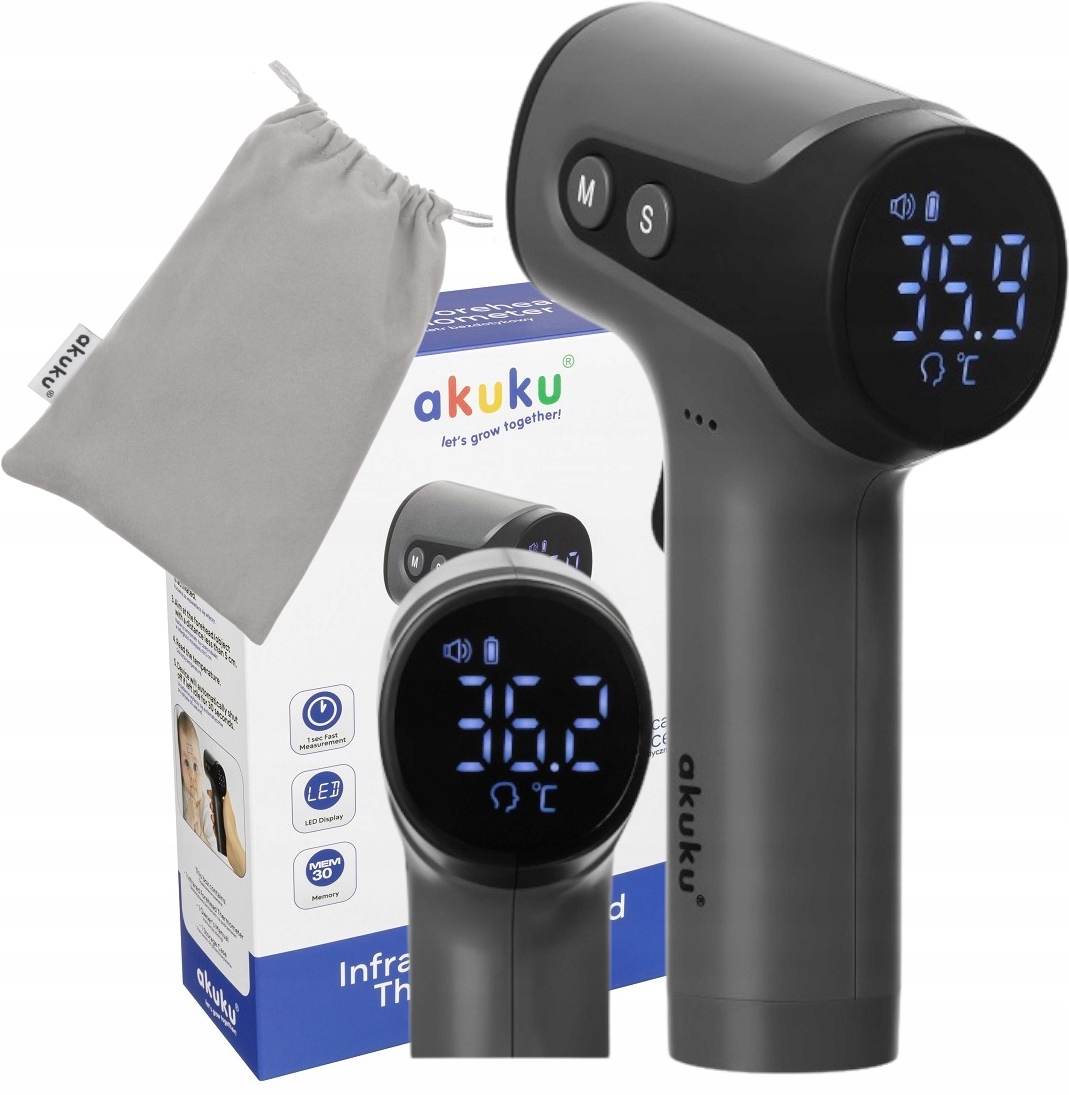 Termometr Akuku wykorzystuje zaawansowaną technologię podczerwieni, która umożliwia bezdotykowy pomiar. To doskonałe rozwiązanie dla małych dzieci, które często nie przepadają za tradycyjnymi metodami, takimi jak pomiar temperatury pod pachą lub w ustach.