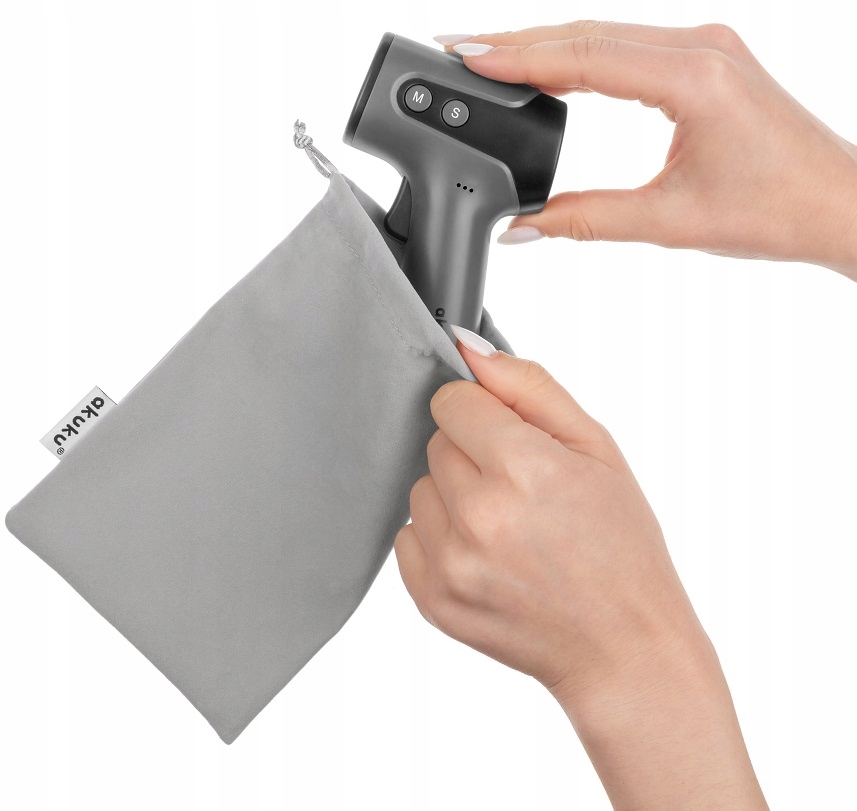 W zestawie z termometrem Akuku znajdziesz praktyczny woreczek do przechowywania, który przyda się podczas podróży, spacerów i wyjść do lekarza.