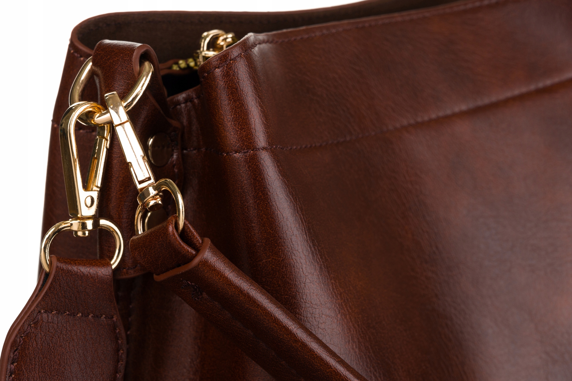 Torebka w zestawie posiada dwa doczepiane karabińczykami akcesoria do noszenia.