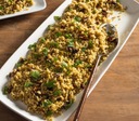 Frikeh (freekeh lub farik) jest młodym zielonym ziarnem pszenicy, które podczas produkcji przechodzi proces prażenia. Jest to właściwie szlachetniejsza odmiana bulguru. Zawiera dużo błonnika i wiele składników odżywczych, np. selen, potas, cynk, żelazo i magnez. Jest doskonałym źródłem białka dla wegetarian i wegan - idealny składnik zup, farszów, dań oraz rozmaitych sałatek (po przegotowaniu). Przykładowe danie to pyszny freekeh z zielonym groszkiem, bobem, orzechami włoskimi i zielonymi oliwkami.