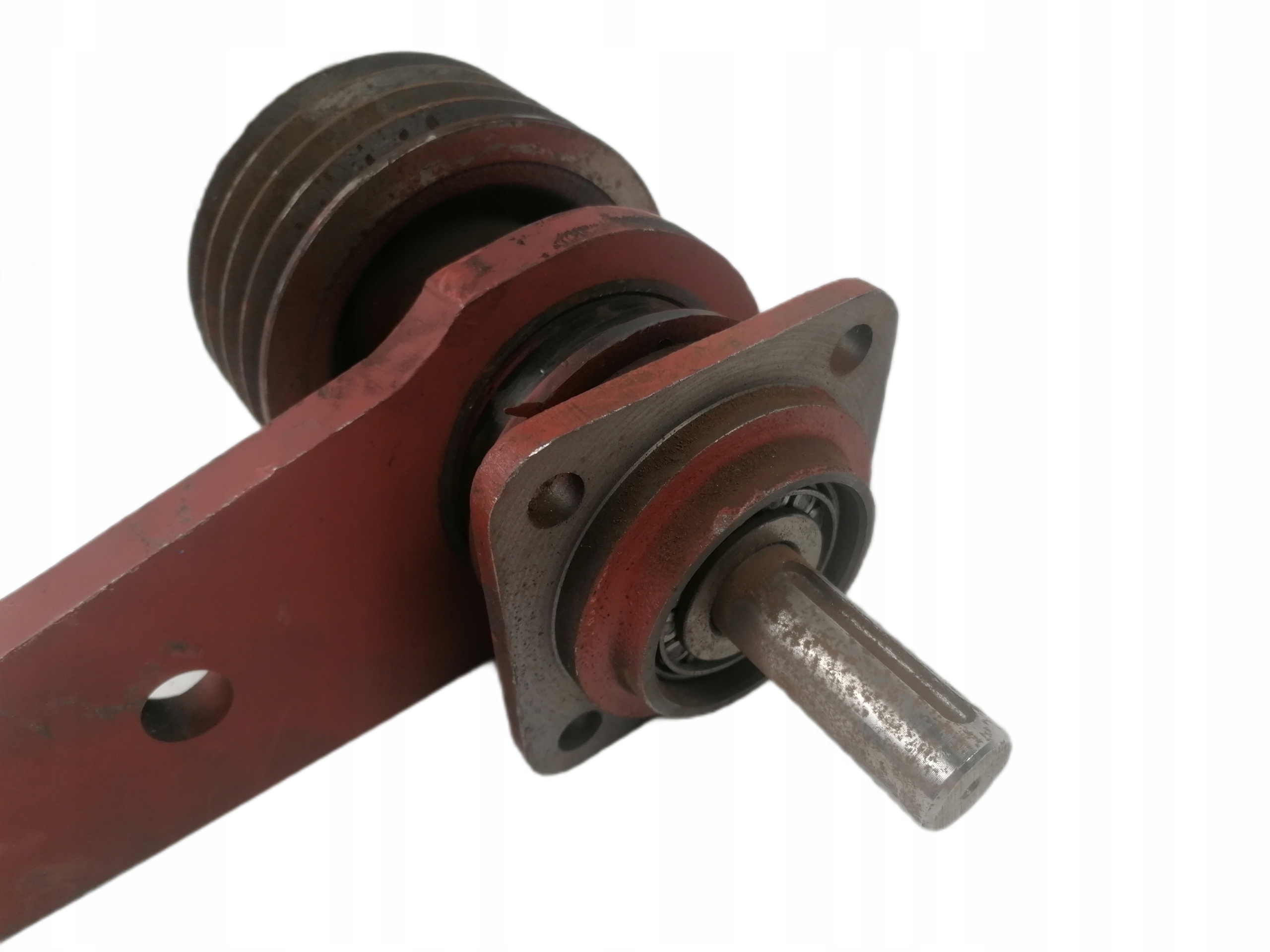 Przygotowana do montażu przystawka wraz z wałkiem i kołem pasowym. W zestawie klin do koła stożkowego.