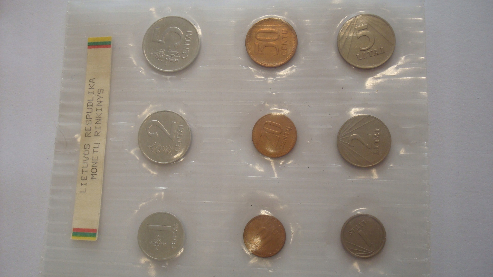 Komplet 9 x moneta Litwa 1 cent - 5 Litai 1991 litów