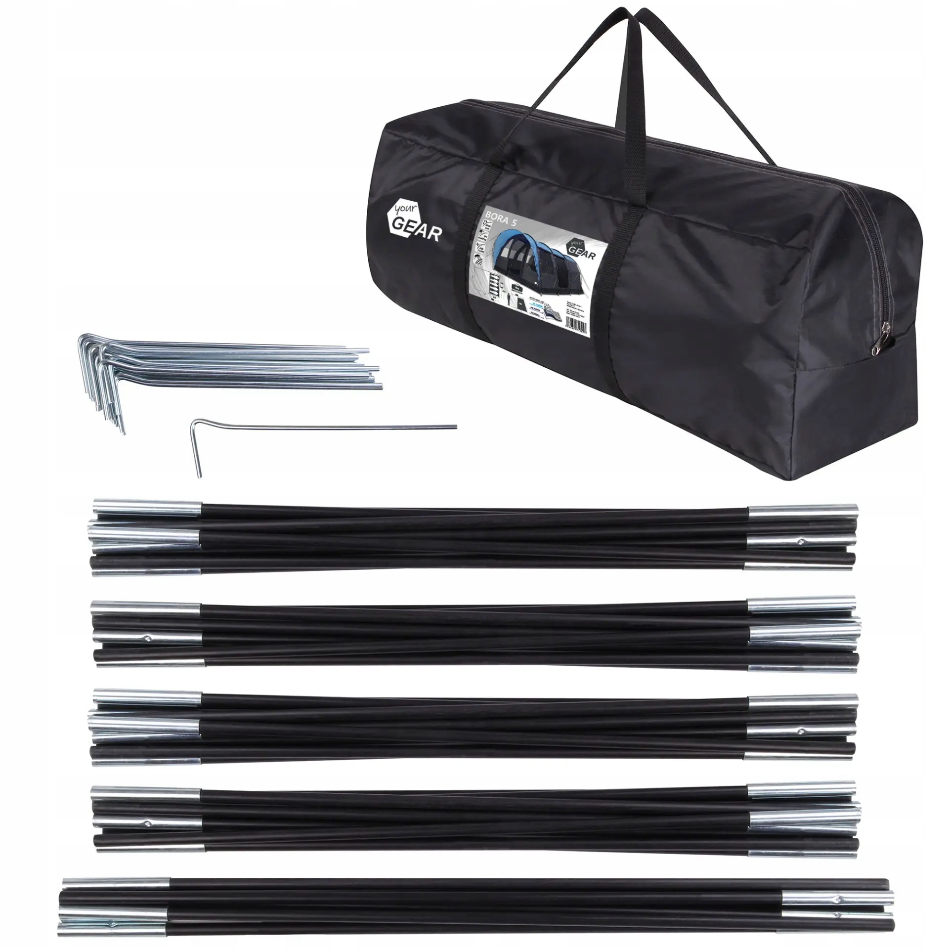 Namiot Bora 5 od your GEAR to doskonałe rozwiązanie dla rodzin i grup do 5 osób. Oferuje ogromną przestrzeń mieszkalną, wysoki komfort użytkowania i maksymalną ochronę przed warunkami atmosferycznymi. Dzięki wysokiemu sufitowi (aż 195 cm) i przemyślanej konstrukcji, każdy poczuje się w nim swobodnie – nawet najwyżsi użytkownicy!
