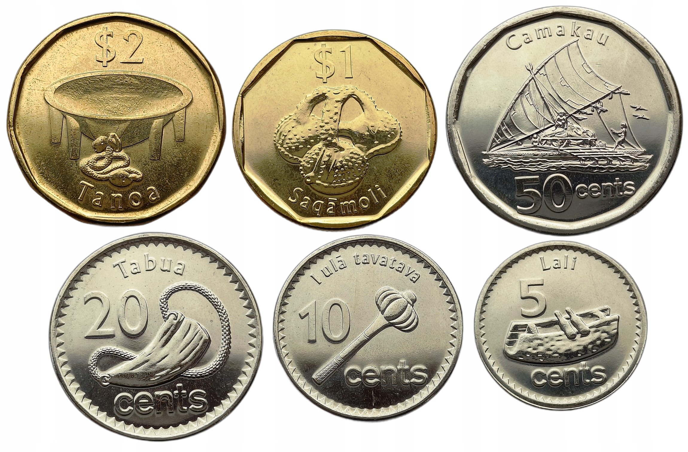 Zestaw sześciu monet z Fidżi wydanych w 2012 roku w stanie Menniczym (UNC). Monety przedstawiają różne zwierzęta występujące na Fidżi oraz elementy związane z tradycjami morskimi tego wyspiarskiego kraju. Każda z monet posiada unikalny motyw, który nawiązuje do fauny i kultury Fidżi.