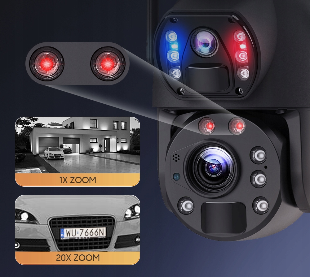 ✅ Dolny obiektyw jest wyposażony w zmiennoogniskową soczewkę z zoom optycznym x 36 co pozwala na odczytanie np tablicy rejestracyjnej z odległości około 100m