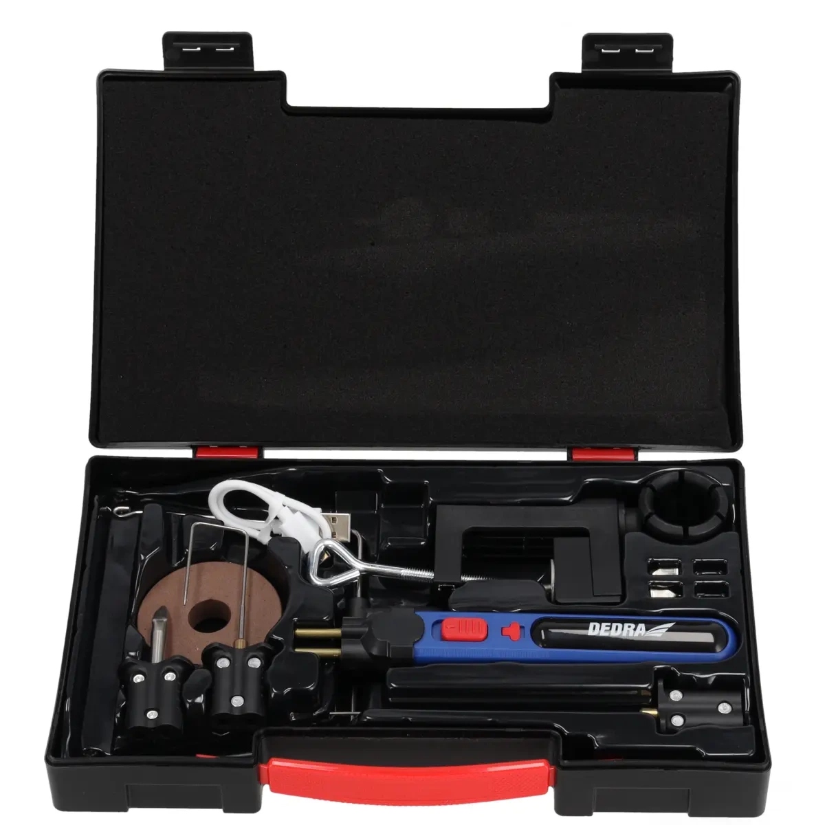 Przeznaczony głównie do zastosowań warsztatowych i hobbystycznych, wycinak ten wyróżnia się możliwością rzeźbienia dzięki specjalnej końcówce, umożliwiającej wypalanie różnorodnych wzorów w materiałach. Dodatkową unikalną zaletą tego urządzenia jest możliwość przymocowania go do blatu roboczego, umożliwiając tym samym pracę w trybie stacjonarnym.