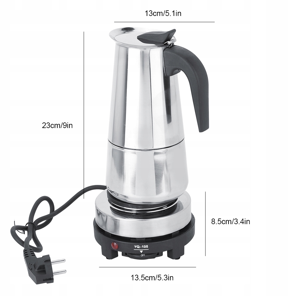 Grzejnik elektryczny Rozmiar: Około. 13,5 x 8,5 cm / 5,3 x 3,4 calaRozmiar dzbanka do kawy: ok. 13 x 11 x 23 cm / 5,1 x 4,3 x 9 cali