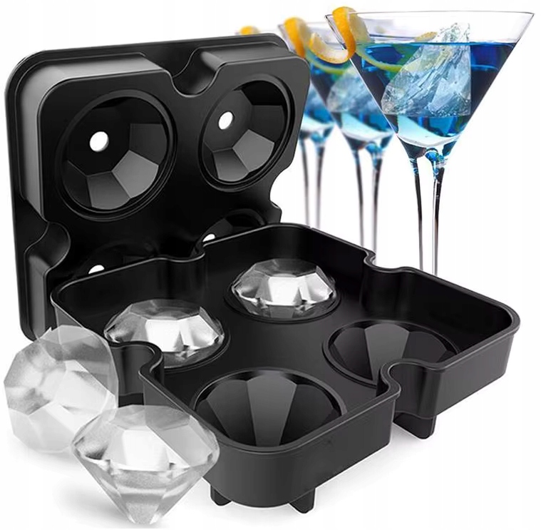 Foremka została wykonana z elastycznego, trwałego i bezpiecznego silikonu, który ułatwia wyjmowanie lodu bez jego kruszenia. Idealna do przygotowania lodu do drinków, soków, koktajli, a nawet do formowania czekolady czy galaretek. Dzięki dużym wymiarom diamentów lód topnieje wolniej, co pozwala dłużej cieszyć się chłodnym napojem bez rozcieńczania jego smaku.