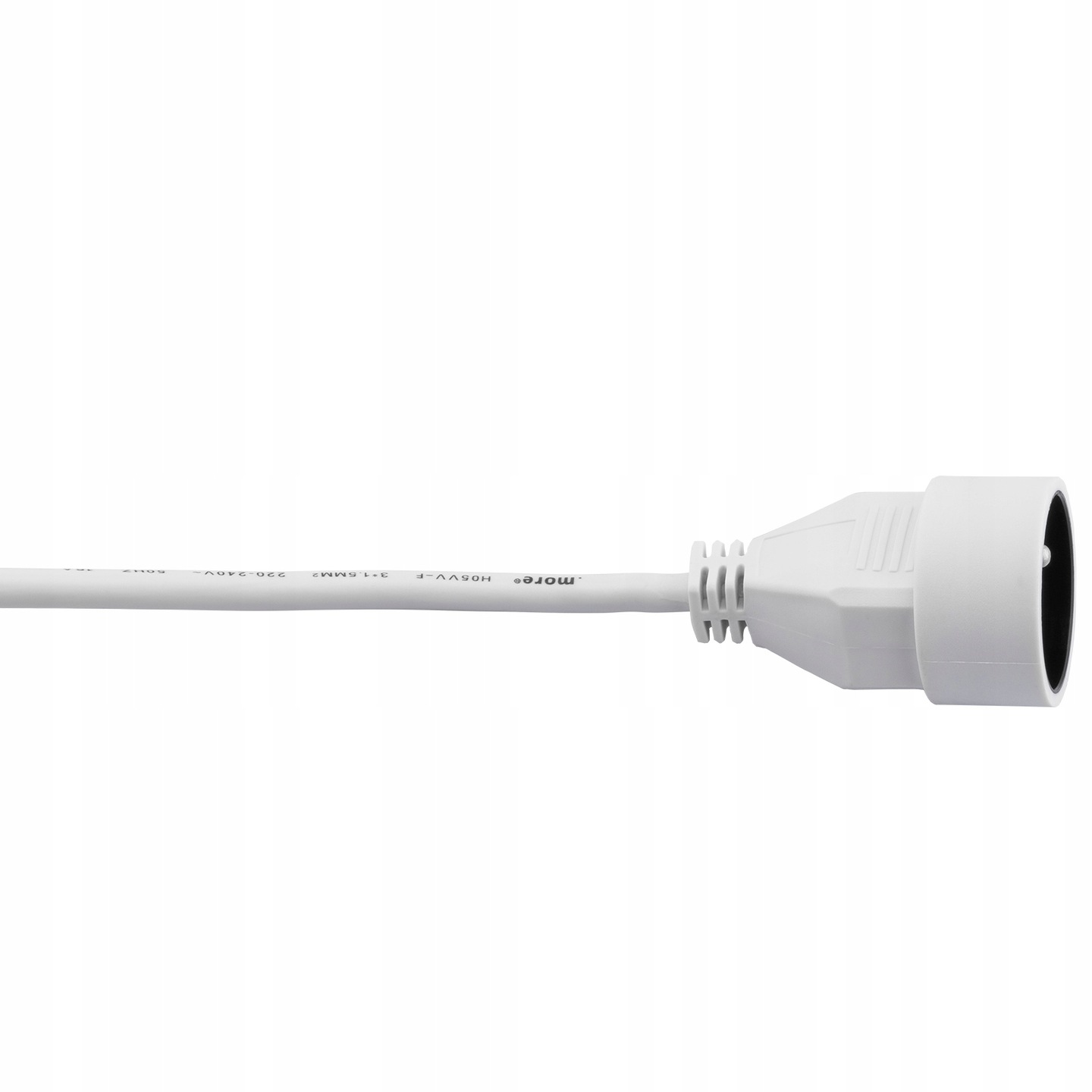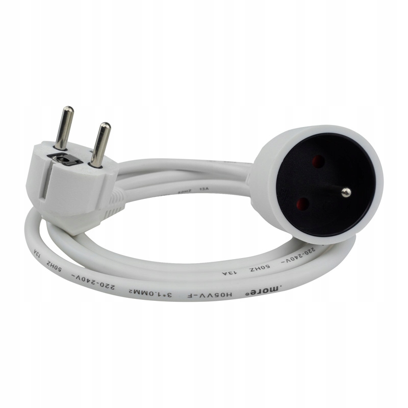 ⭕✅⚒️ Przedłużacz sieciowy jednogniazdowy o długości 1,5 metra, w kolorze BIAŁYM, o maksymalnym obciążeniu 2500W.