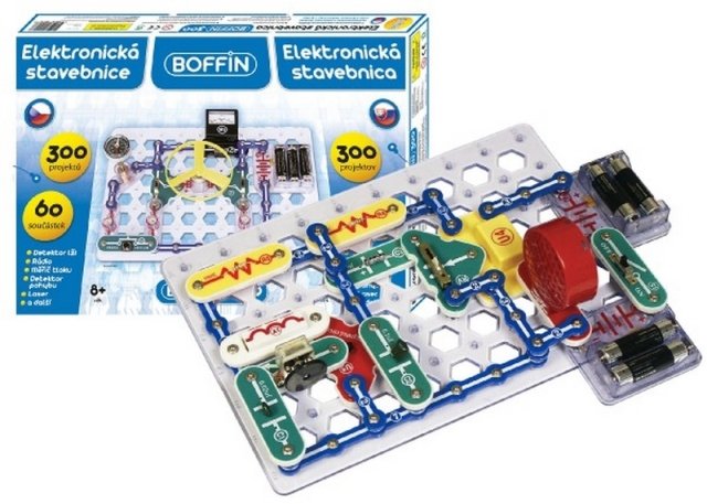 Zestaw elektroniczny Boffin 300 zawiera 60 elementów, z których można zbudować następujące projekty:
