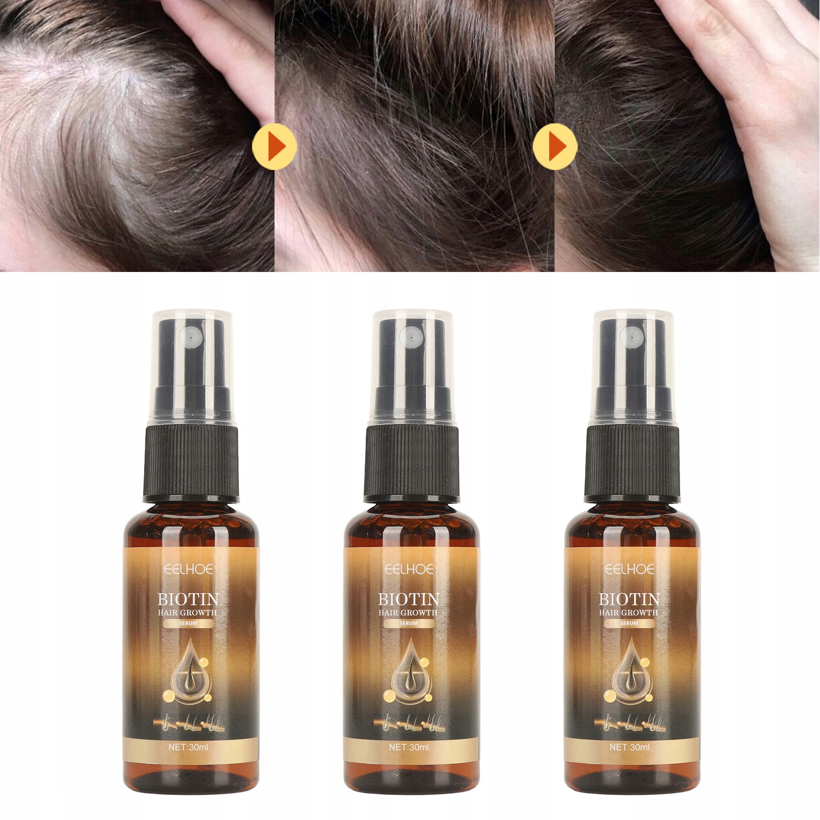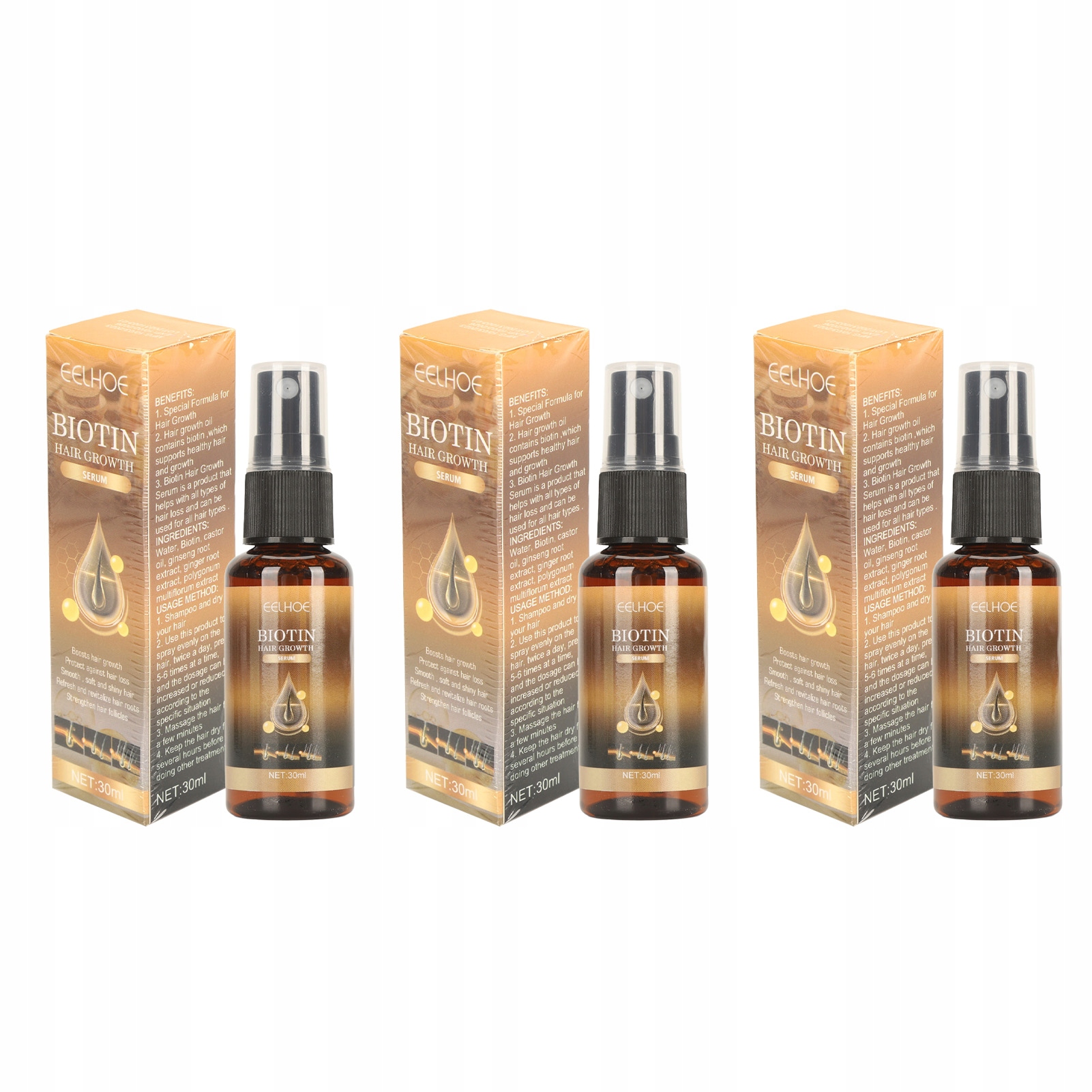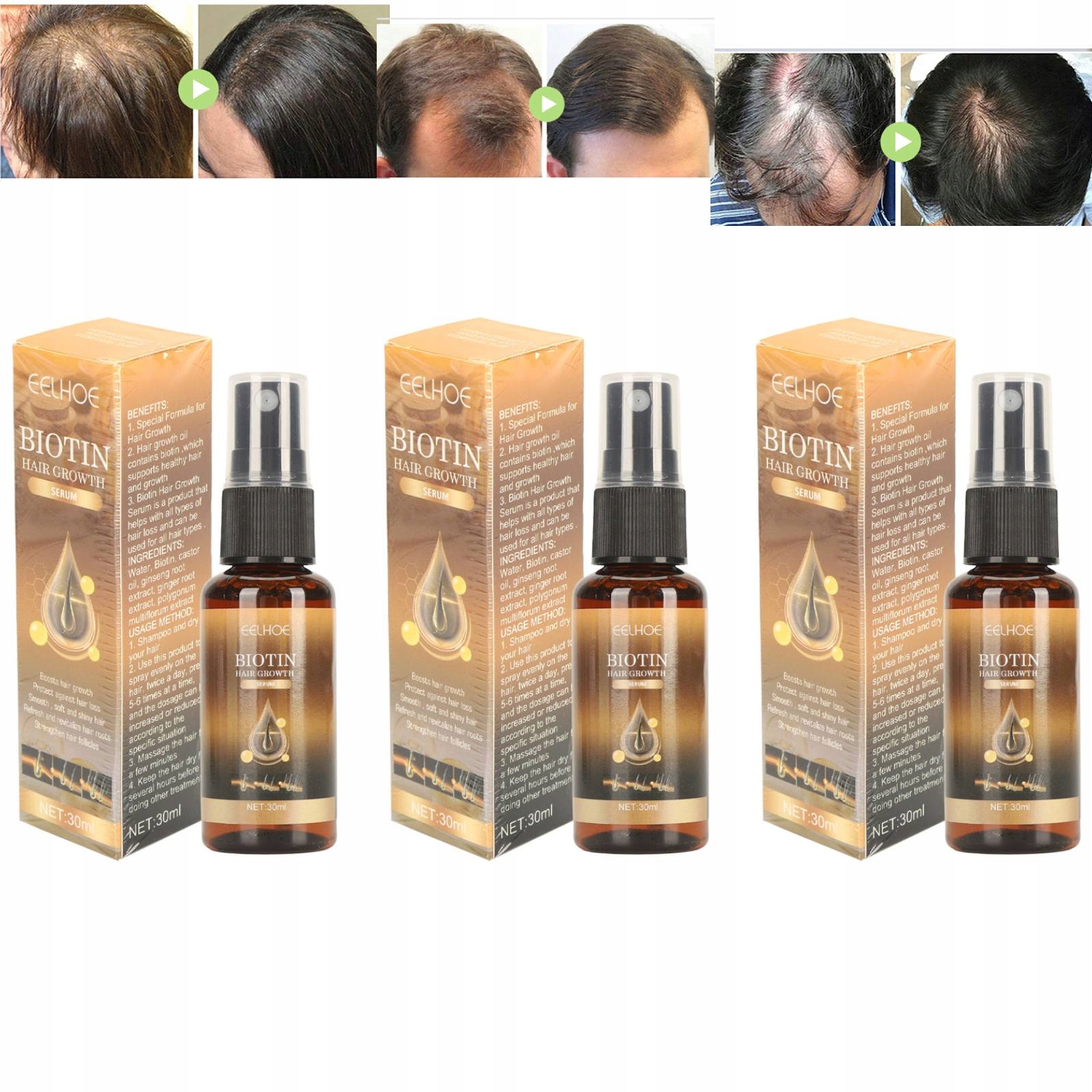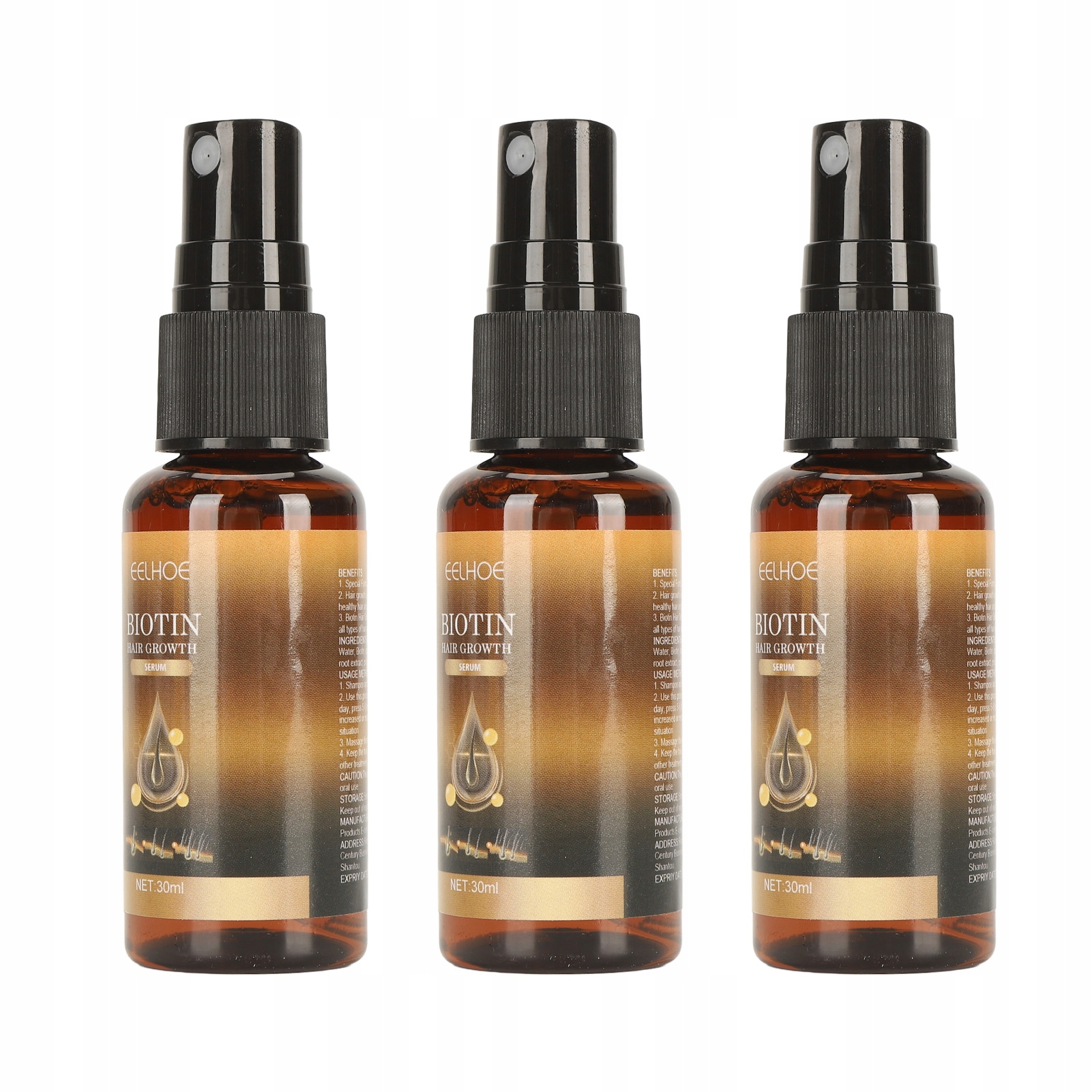 3 szt. Biotyna Spray na porost włosów dla grubszych włosów Regeneracja Pielęgnacja skóry głowy Wzmacnia korzeń imbiru Wyciąg z żeń-szenia Serum na odrastanie włosów w sprayu 30 ml