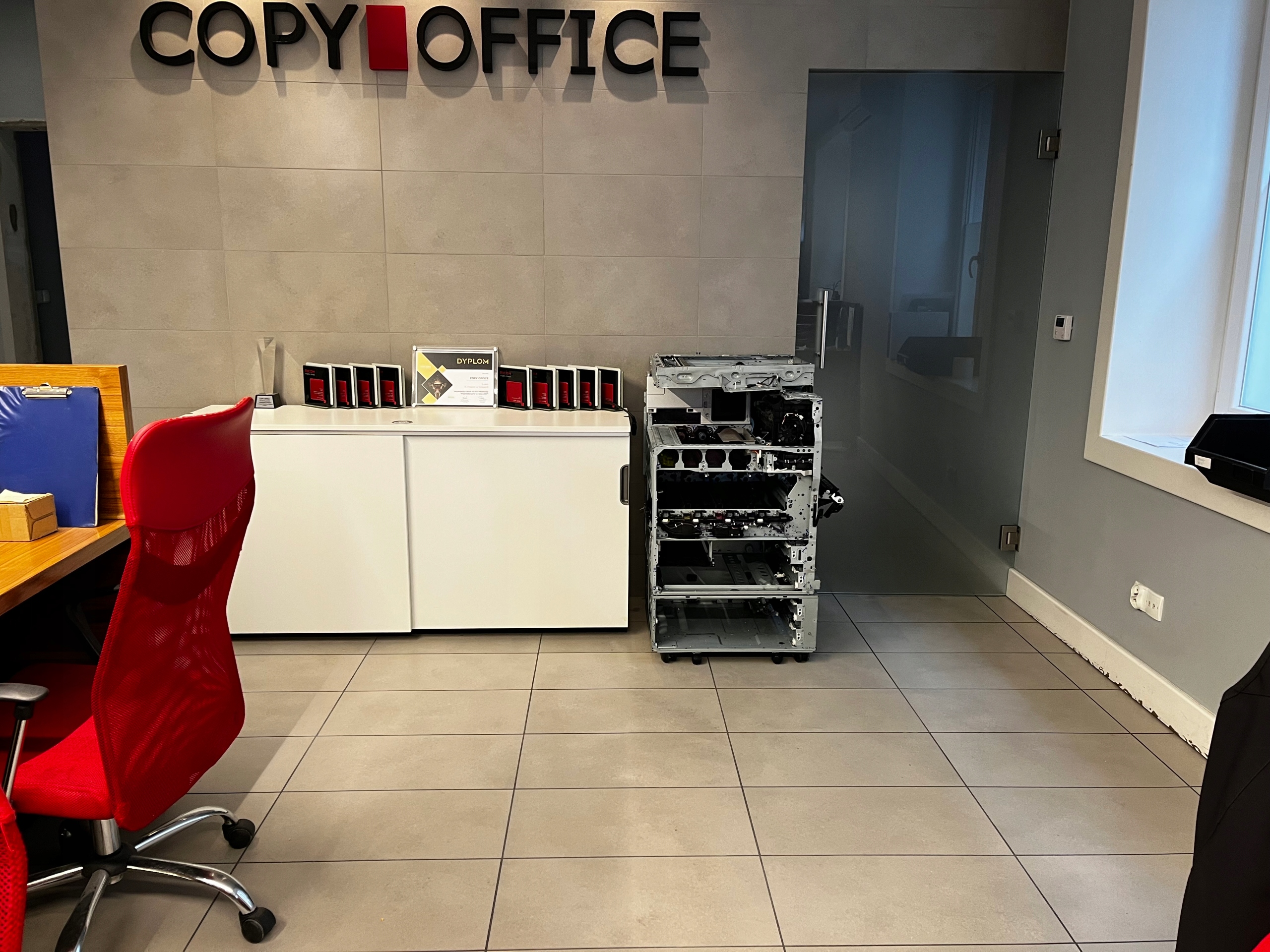 Wraz z urządzeniem dostarczamy wszystko co potrzebne, aby podłączyć urządzenie do sieci oraz oryginalny toner pełnowartościowy.