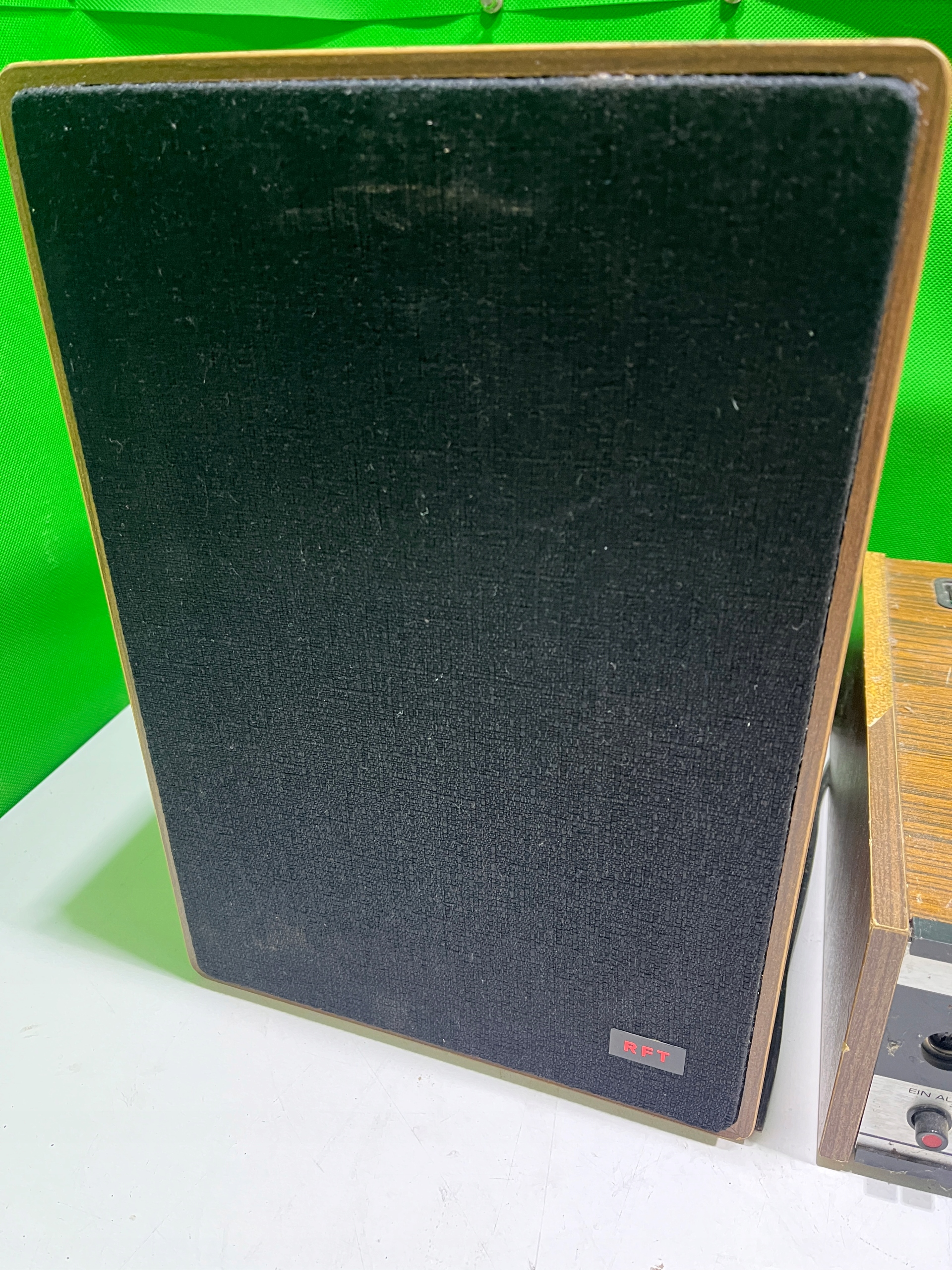 Przedmiotem aukcji jest stare radio plus głośniki widoczne na zdjęciach .