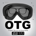 Specjalna konstrukcja OTG (Over The Glasses) pozwala na wygodne noszenie gogli na większości okularów korekcyjnych (maksymalny rozmiar okularów: 12 cm szerokości x 5.5 cm wysokości).
